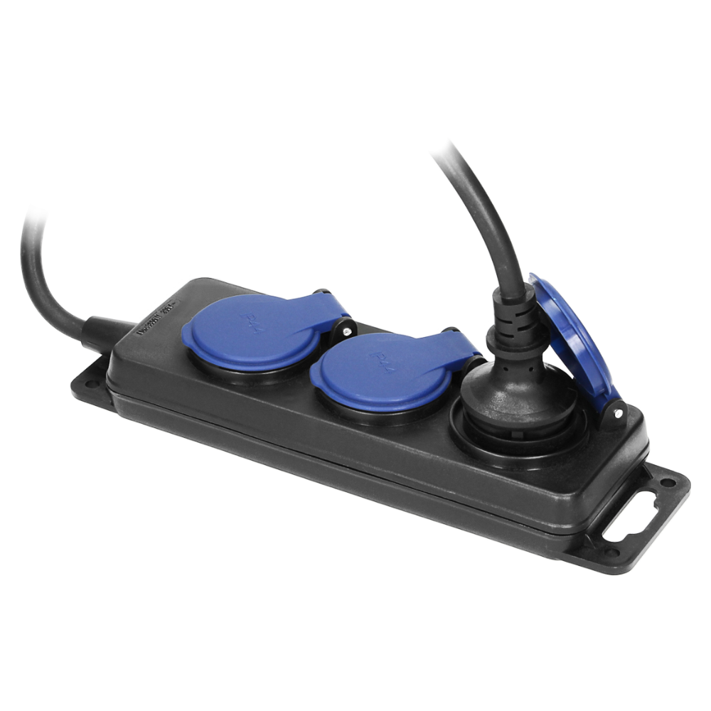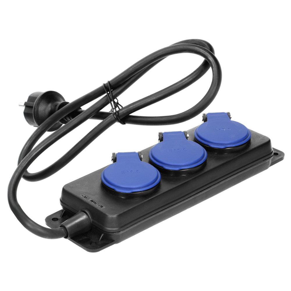 Przedłużacz warsztatowy bryzgoszczelny IP44, 3 gniazda 2P+Z IP44, przewód gumowy H05RR-F 3x1,5mm²o długości 3m