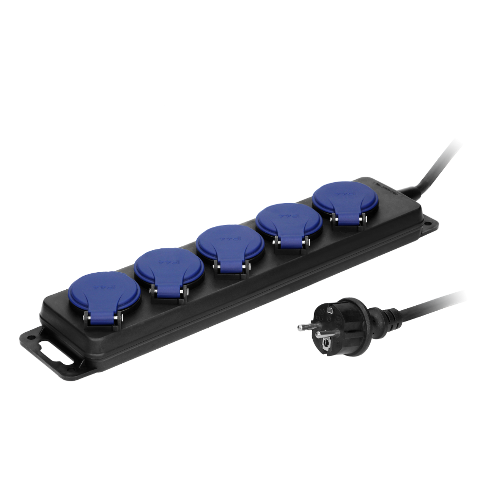 Przedłużacz warsztatowy bryzgoszczelny IP44, 5 gniazda 2P+Z IP44, przewód gumowy, H05RR-F 3x1,5mm², długość 3m