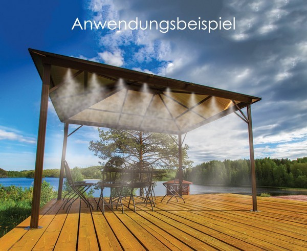 Kurtyna wodna obniżająca temperaturę otoczenia w upalne dni. Posiada możliwość bezpośredniego podłączenia do węża ogrodowego lub kranu. Można regulować kąt zamgławiania. Absrobuje kurz znajdujący się w powietrzu.