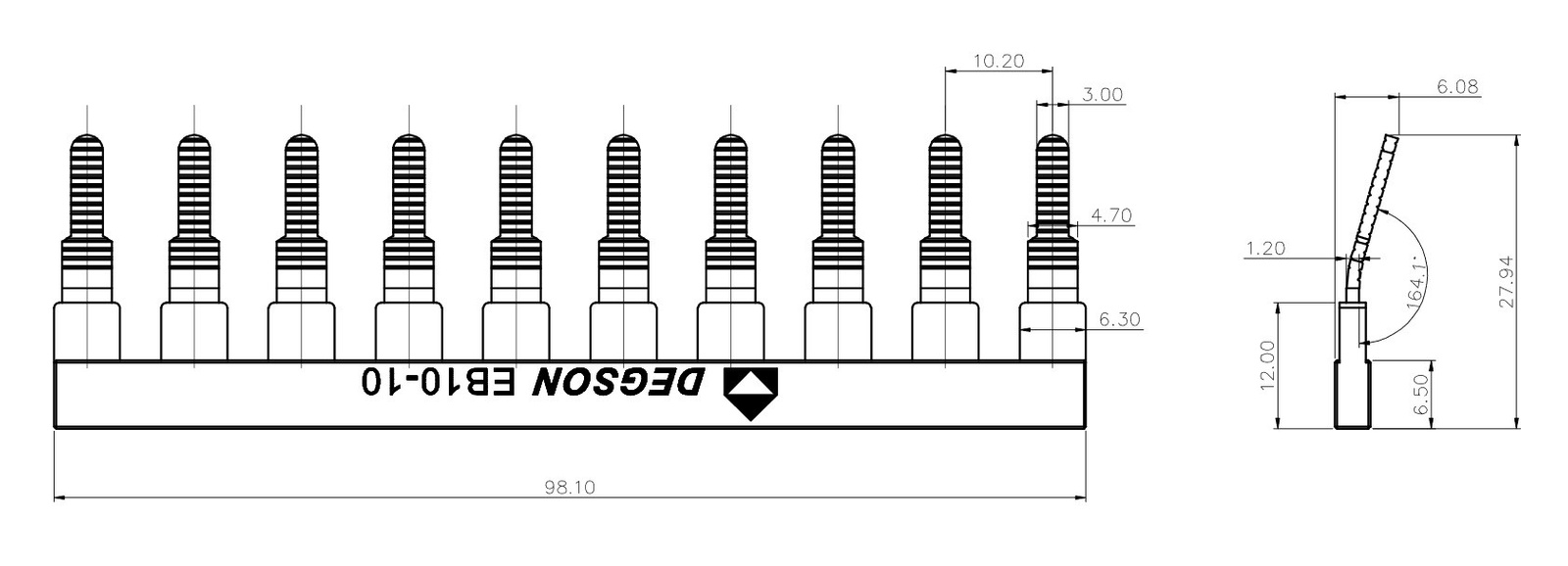 Mostek wtykowy 10-torowy EB 10-8 do złączek szynowych PC6 DGN EB10-8-11-00A(H)