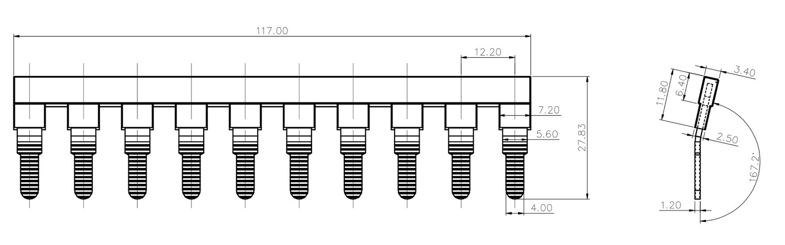 - Mostek wtykowy EB 10-12 do PC16 do złączek szynowych 10-torowy