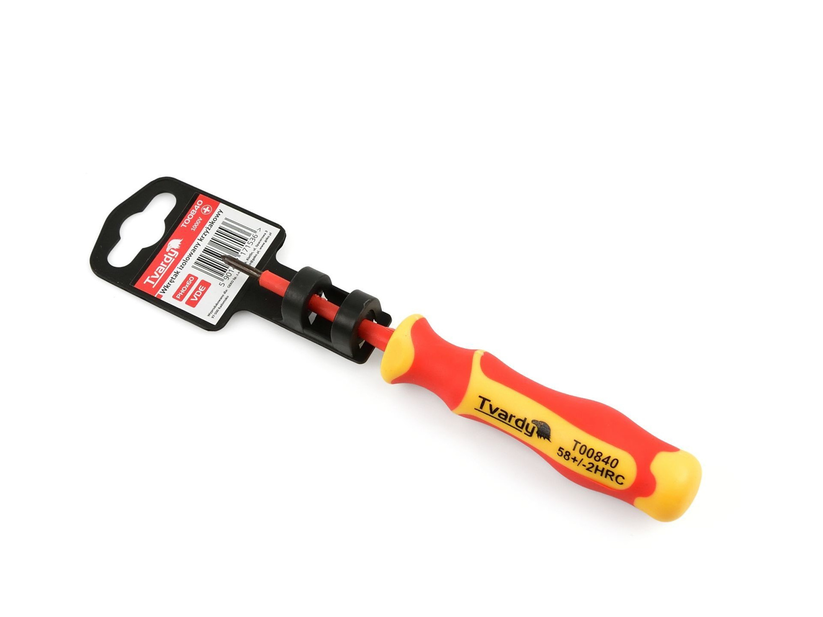 Profesjonalny wkrętak izolowany VDE krzyżakowy PH0 przeznaczony dla elektryków. Ergonomiczna, wielokomponentowa rękojeść zapewnia skuteczną izolacje do 1000V. Doskonale sprawdzą się podczas wykonywania wszelkiego rodzaju prac przy instalacjach niskonapięciowych. Grot wkrętaka wykonany z wysokiej jakości stali S2 poddanej odpowiedniej obróbce cieplnej w celu uzyskania optymalnych parametrów, obróbce cieplnej w celu uzyskania optymalnej twardość grotu mieści się w przedziale 56-60 HRC. Trzpień wkrętaka natomiast wykonany jest ze stali CRV która charakteryzuje się większą sprężystością.