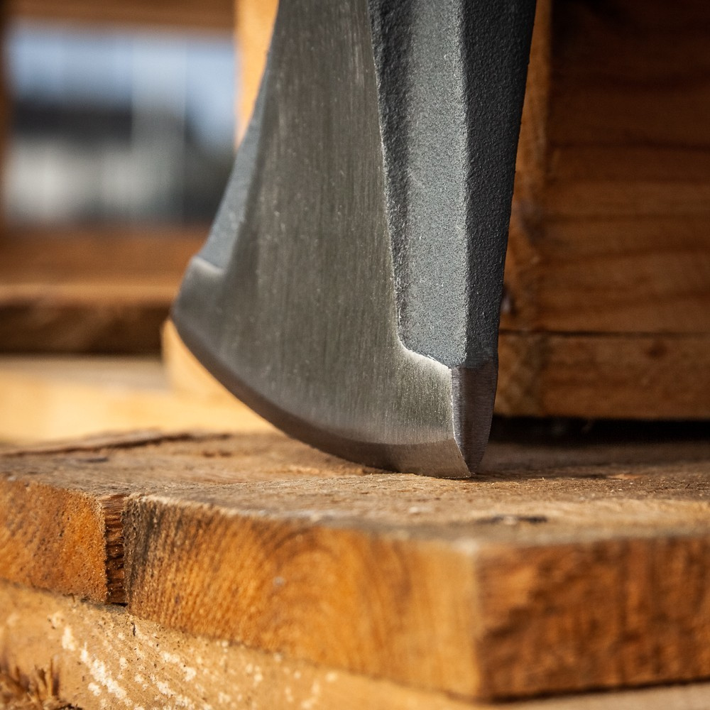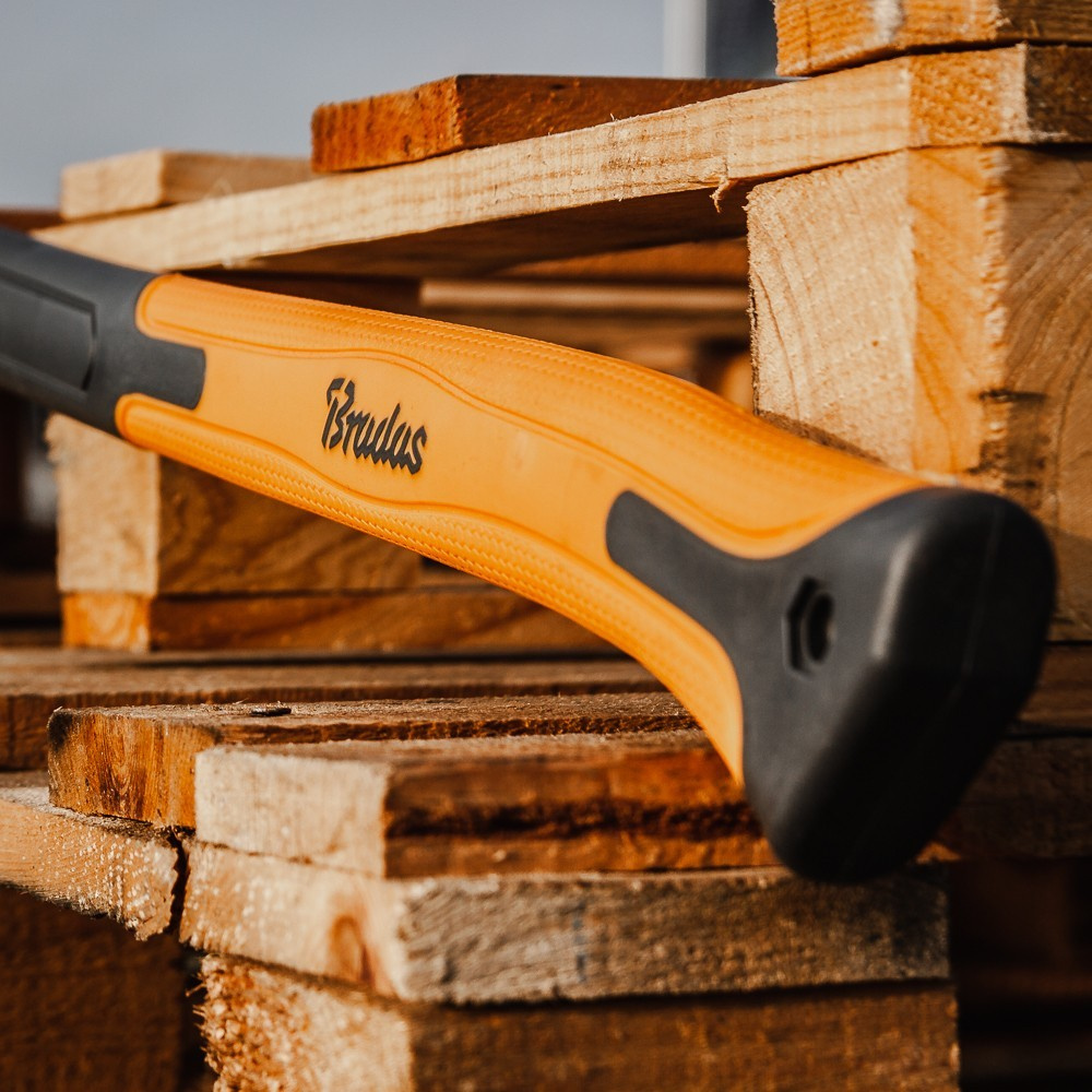 Pomarańczowa część trzonka posiada specjalną strukturę, która zapobiega przesuwaniu się narzędzia w dłoni podczas pracy, haczykowate zakończenie trzonka gwarantuje pewny uchwyt i uniemożliwia wyślizgnięcie się siekiery.