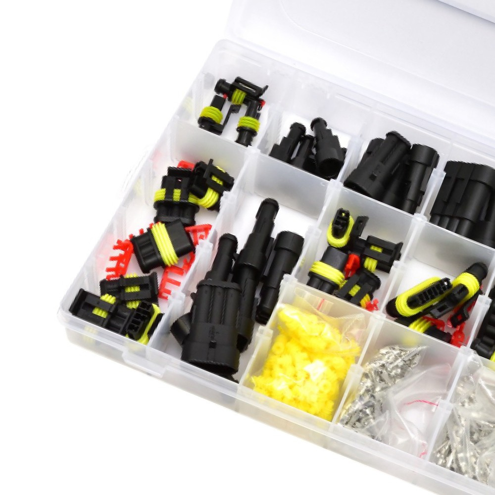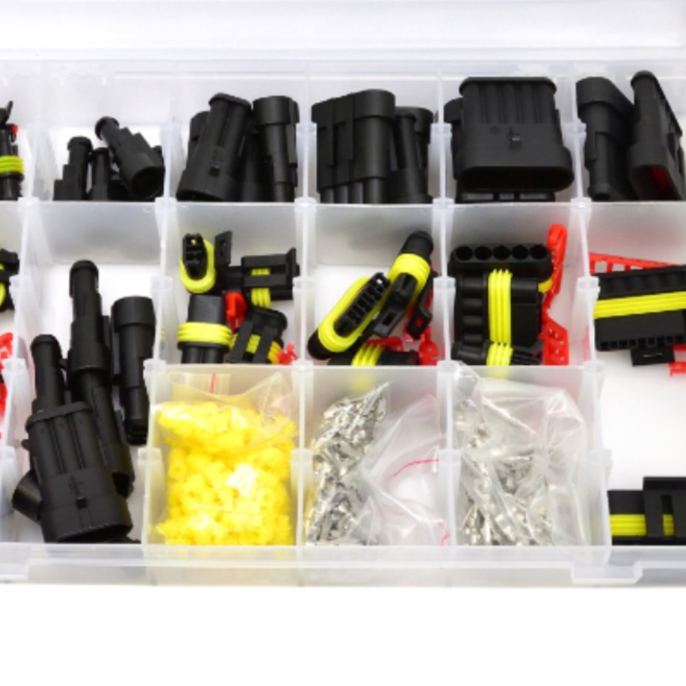 ➡️ Zestaw 424 hermetycznych złączy elektrycznych w 6 rozmiarach pasujących do najbardziej popularnych średnic przewodów. Złącza posiadają gumowe zabezpieczenie, które chroni je przed olejami, paliwem czy innymi płynami. Zapewniają bardzo dobrą izolację i szczelność. Stosowane w branży motoryzacyjnej, m.in. do czujników i urządzeń w samochodach.
