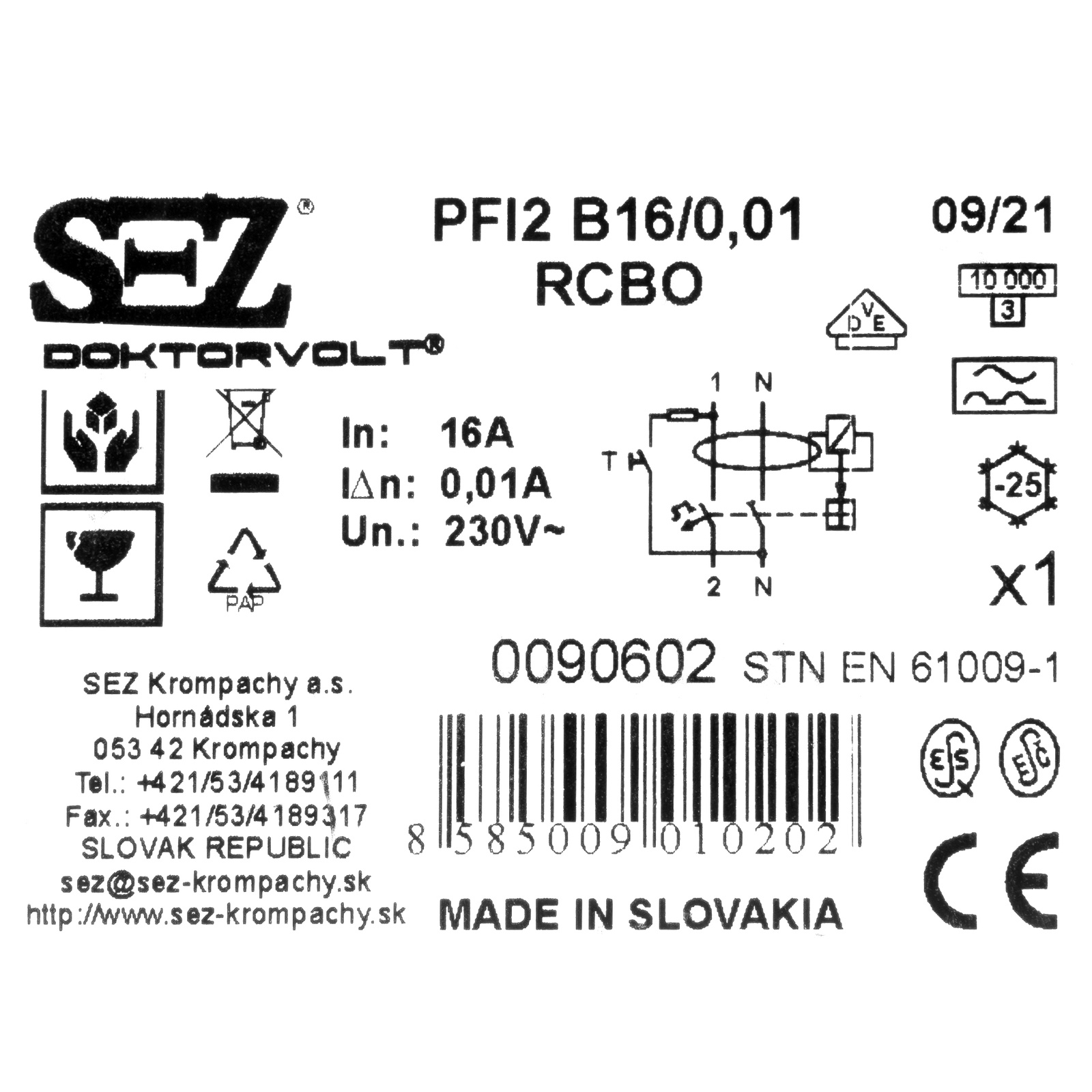 - Wyłącznik nadprądowy PFI2 B16/0,01 0090602 SEZ - Urządzenie zabezpieczające do zastosowania w instalacjach elektrycznych do ochrony obwodów przed zwarciem