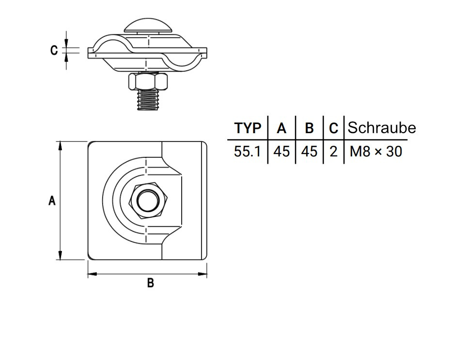 Złącze krzyżowe służy do krzyżowego połączenia drutu odgromowego lub połączenia drutu z obróbką blacharską przy attykach. Złącze składa się z 2 części o grubości 2mm, skręcanych za pomocą jednej śruby M8.