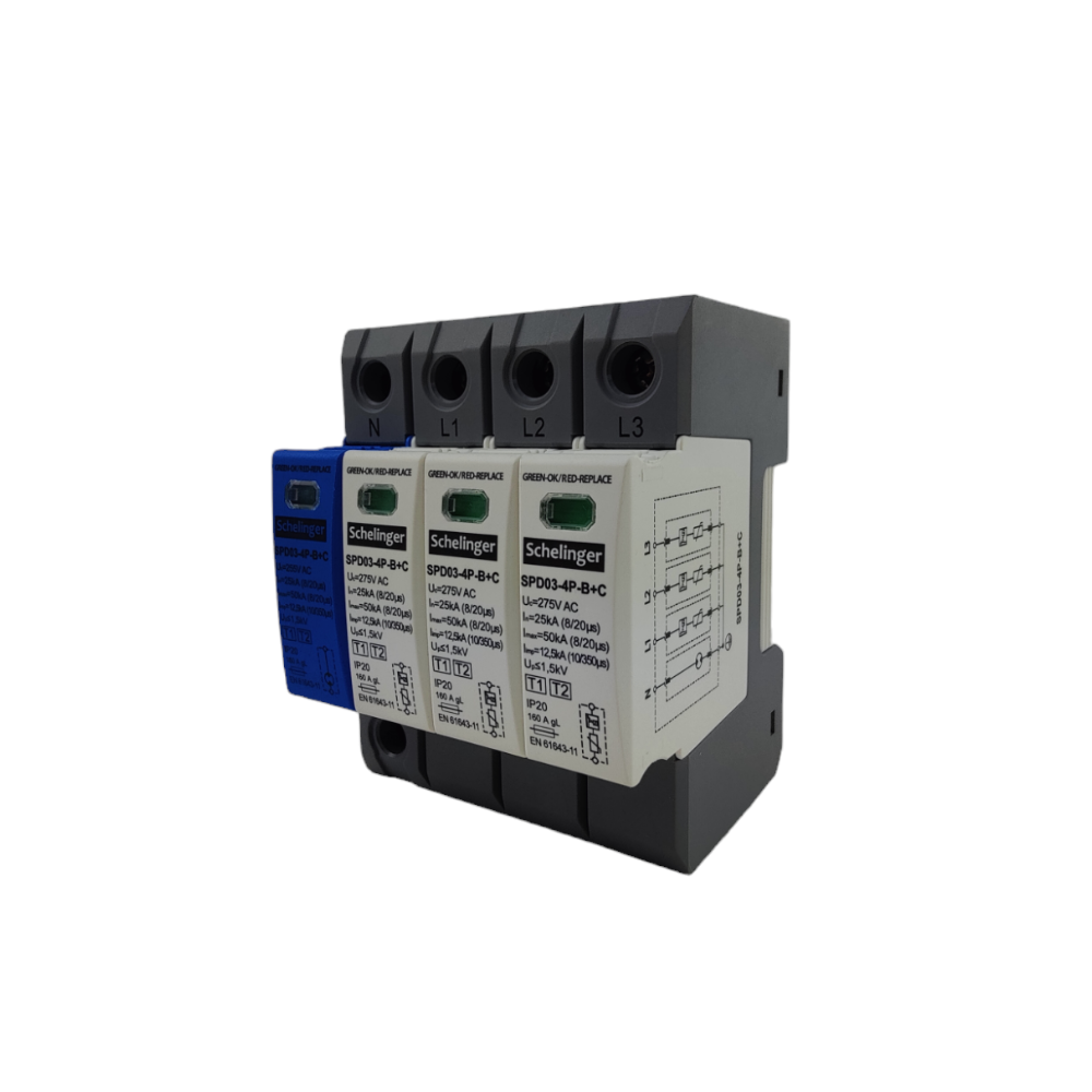 - Ogranicznik przepięć marki Schelinger przeznaczony do ochrony instalacji elektrycznych przed przepięciami. Urządzenie spełnia wymagania klasy T1+T2 (B+C)