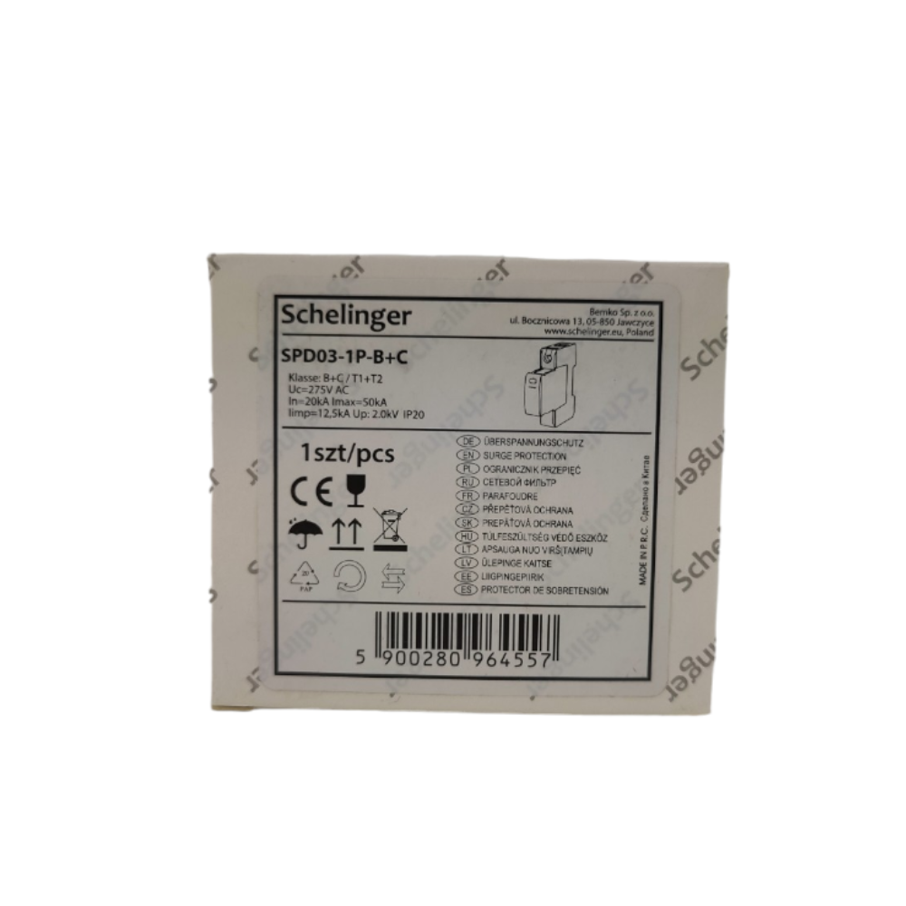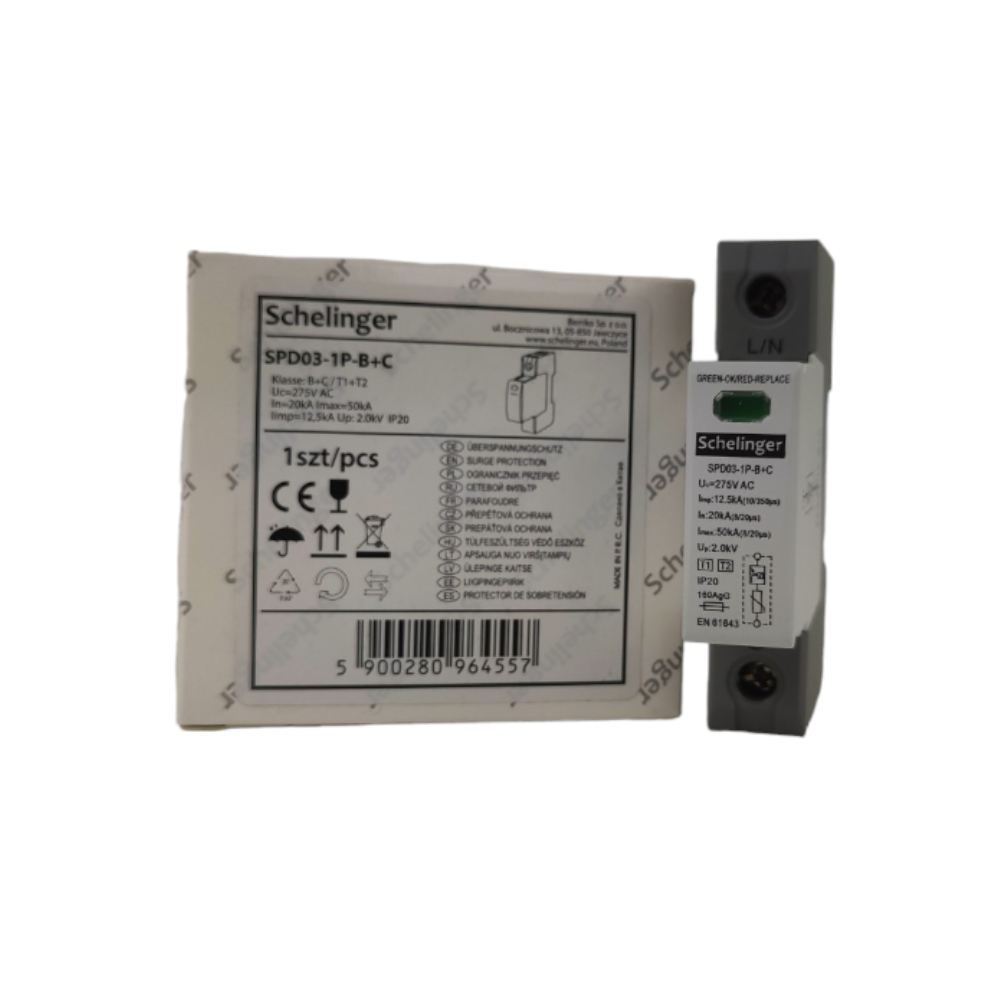 - Ogranicznik przepięć marki Schelinger przeznaczony do ochrony instalacji elektrycznych przed przepięciami. Urządzenie spełnia wymagania klasy T1+T2 (B+C)