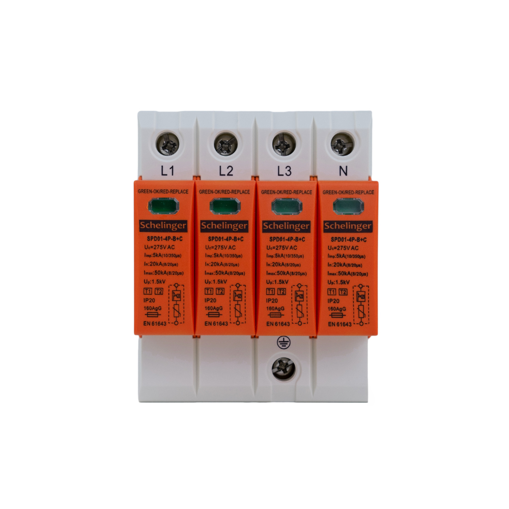 Ogranicznik przepięć 4P 5kA(10/350) klasa T1 T2 (B C) Schelinger A51-SPD01-4P-B+C