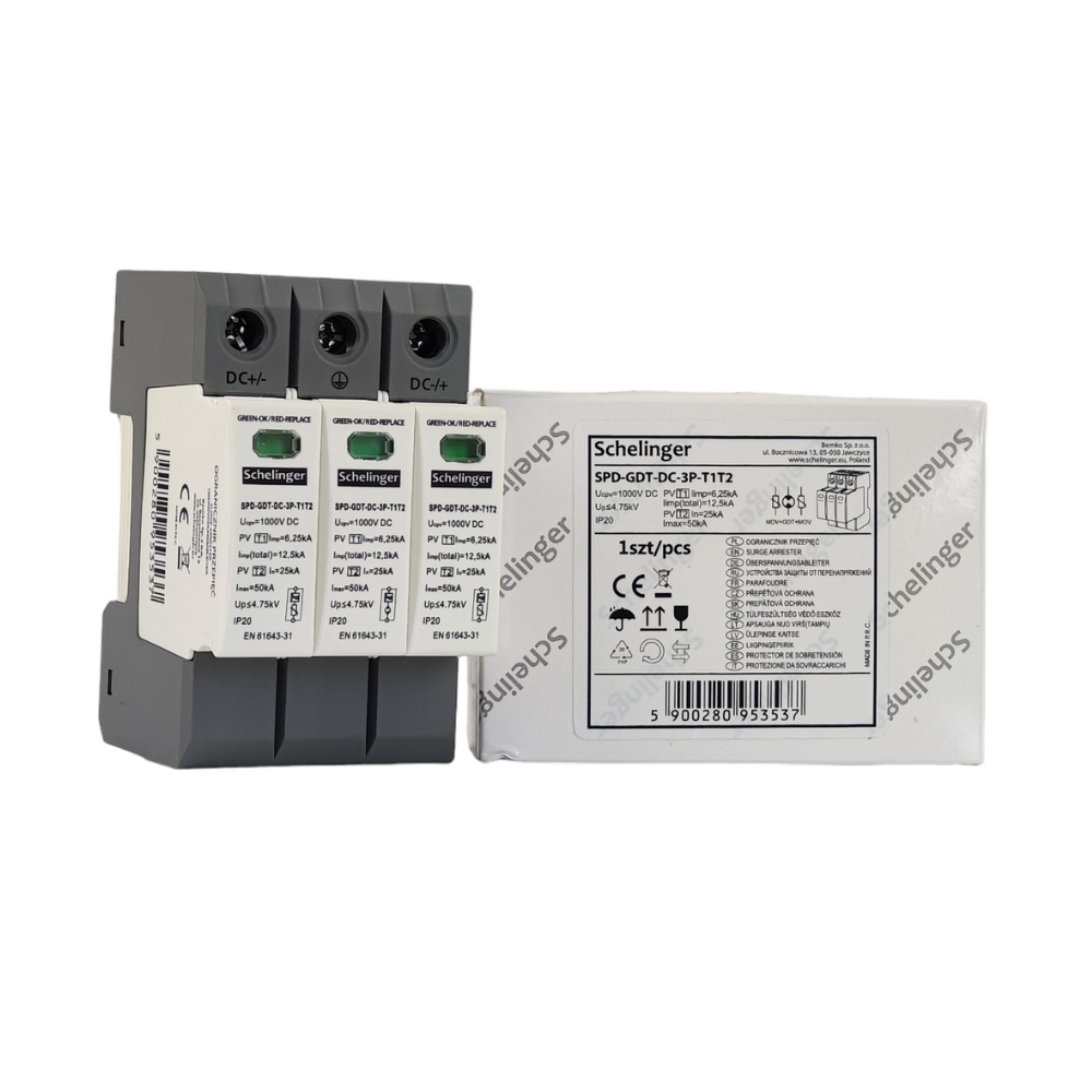 - Ogranicznik przepięć 3P 12,5kA DC 1000V klasy T1+T2 (B+C) z iskiernikiem gazowym marki Bemko - zaawansowane urządzenie ochronne.