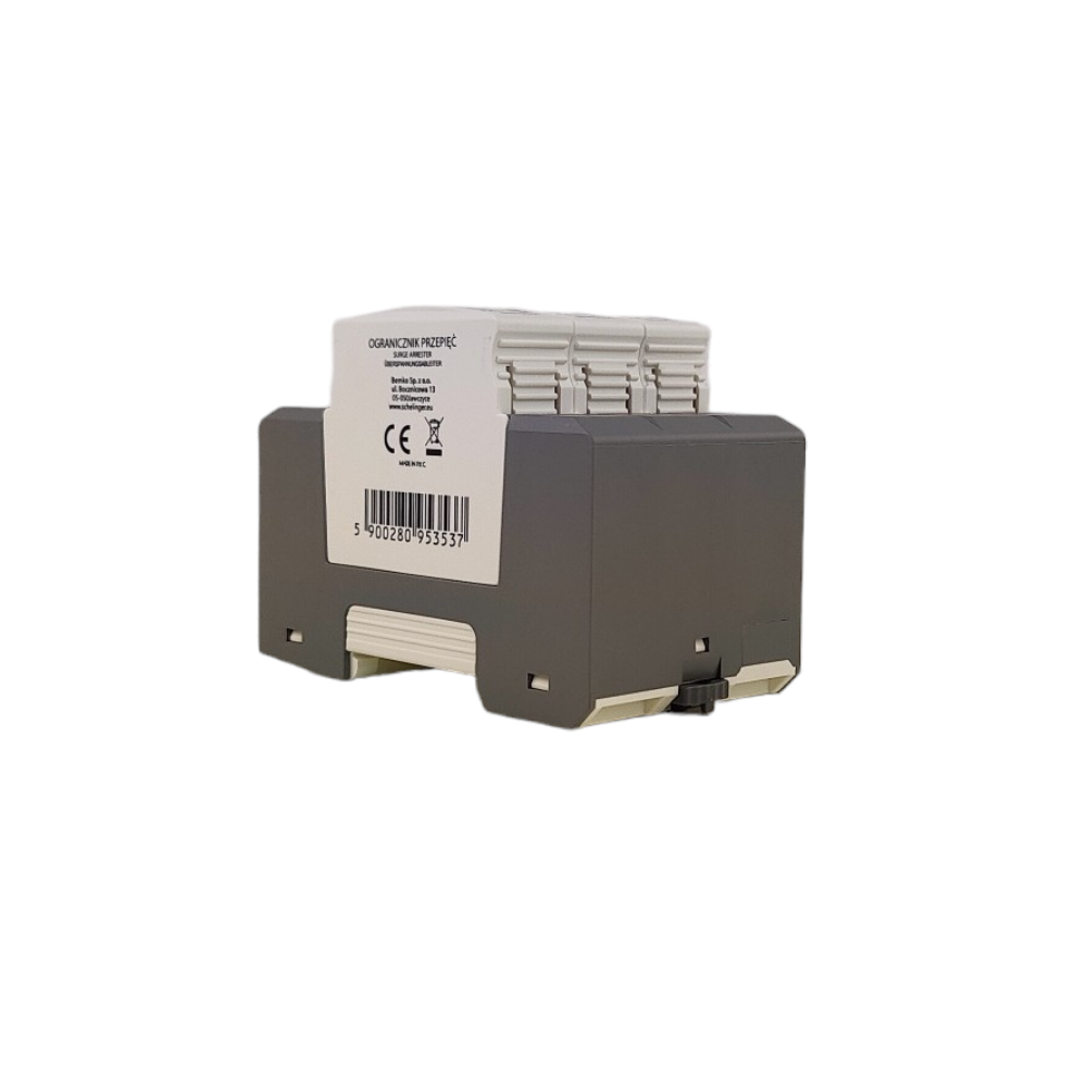 Ogranicznik przepięć charakteryzuje się kompaktowymi wymiarami (długość: 90mm, szerokość: 54mm, wysokość: 66mm) oraz możliwością montażu na szynie DIN 35 (TH 35), co ułatwia instalację i integrację z istniejącymi systemami. Dzięki temu urządzenie można łatwo i szybko zamontować w dowolnym miejscu.