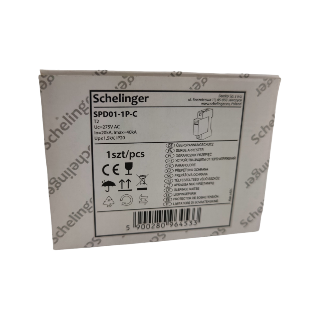 Kompaktowa i zwarta obudowa wykonana z najlepszej jakości materiałów zapewnia niezawodne i bezpieczne działanie. Dzięki swojej solidnej konstrukcji ogranicznik przepięć Schelinger jest odporny na uszkodzenia mechaniczne i warunki atmosferyczne.