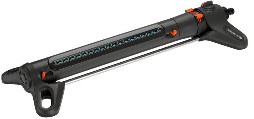 Zraszacz Aquazoom podlewa powierzchnię od 28 do 350 m². Podlewa równomiernie przez co nie powstają kałuże, a trawnik pozostaje optymalnie nawodniony. Za pomocą suwaków ustawić można zasięg - od 7 do 21 metrów i szerokość zraszania od 4 do 17 metrów, a także szybkość przepływu wody, odpowiednio do potrzeb trawnika. Szeroka stopka zraszacza sprawia, że pewnie stoi on stabilnie na podłożu.