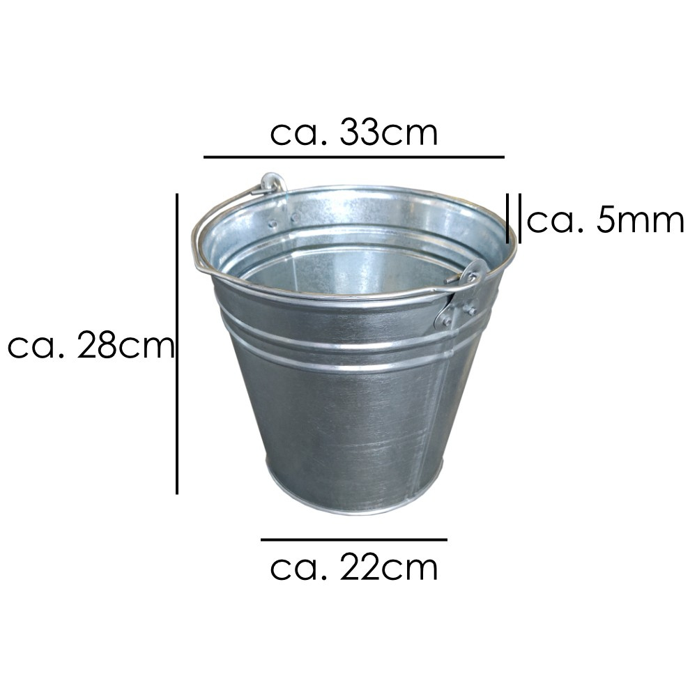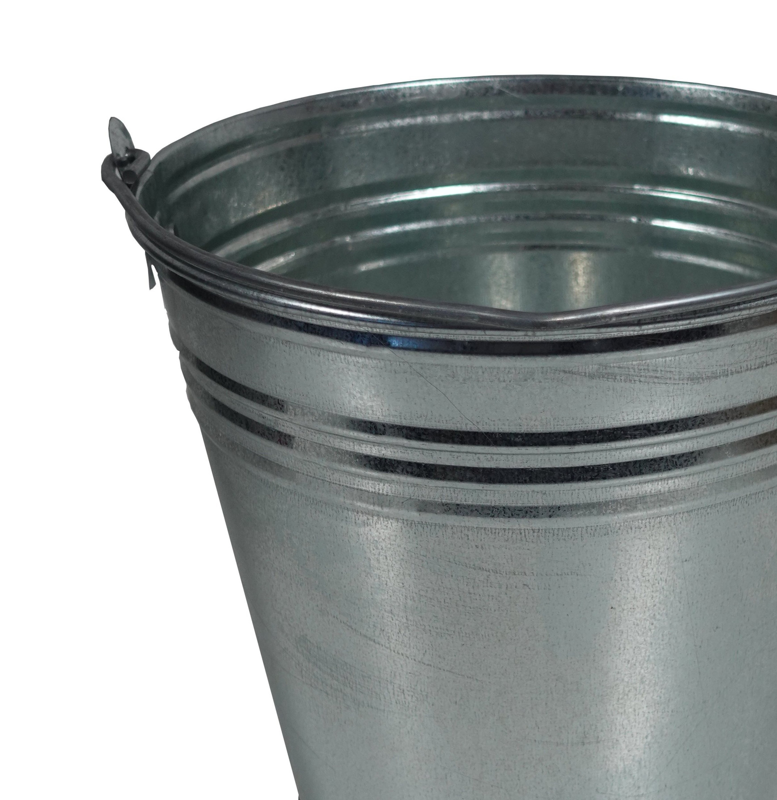 Ocynkowane wiadro z metalową rączką do stosowania w ogrodzie i przy remontach budowlanych. Wzmocniona konstrukcja zapewnia komfort pracy w wymagających warunkach.