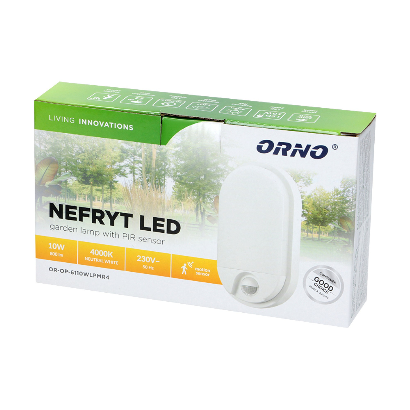 NEFRYT LED 10W. oprawa ogrodowa z czujnikiem ruchu 140st. 850lm. IP54. 4000K. biała OR-OP-6110WLPMR4