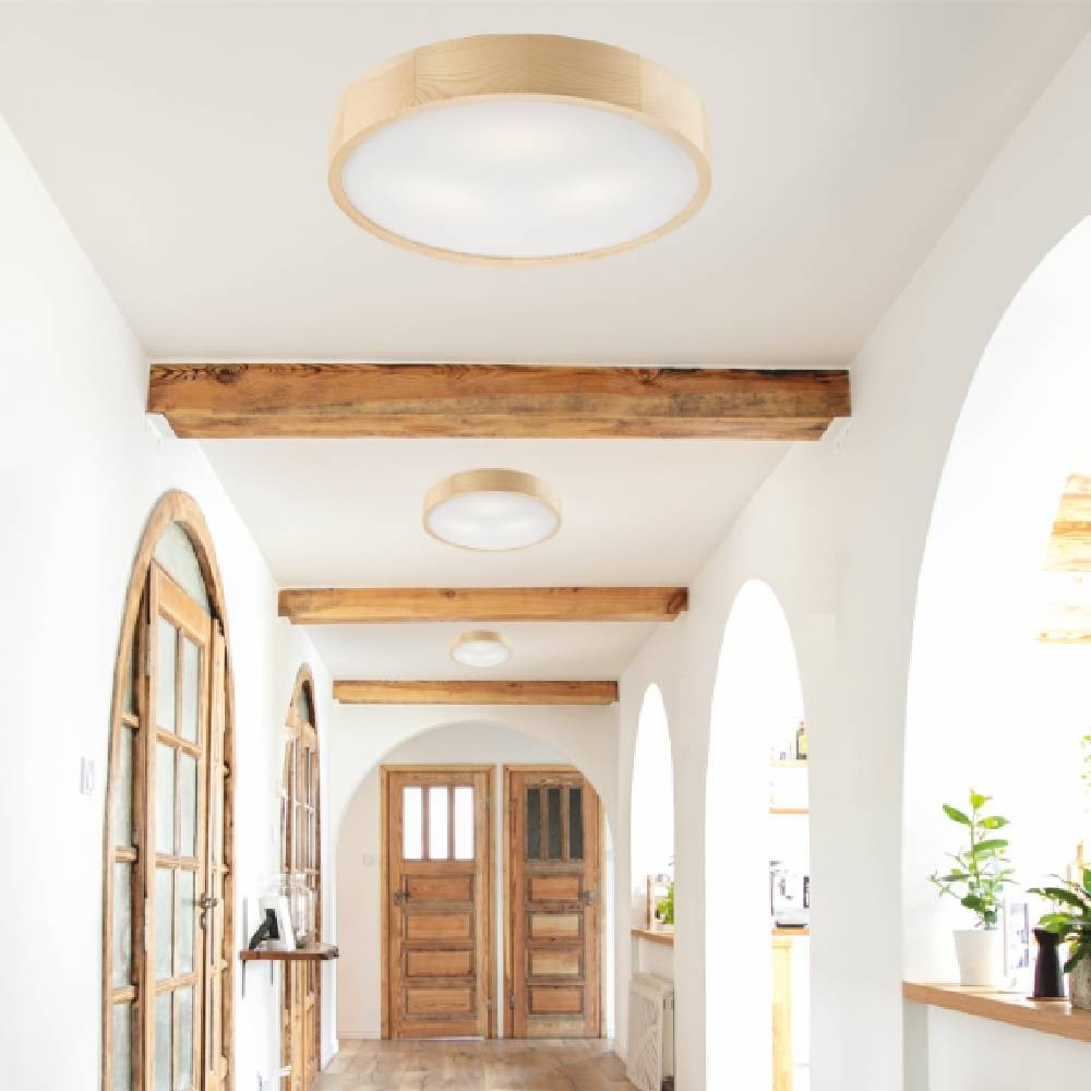 Plafon drewniany sosnowy LED 3-punktowy okrągły 47 cm