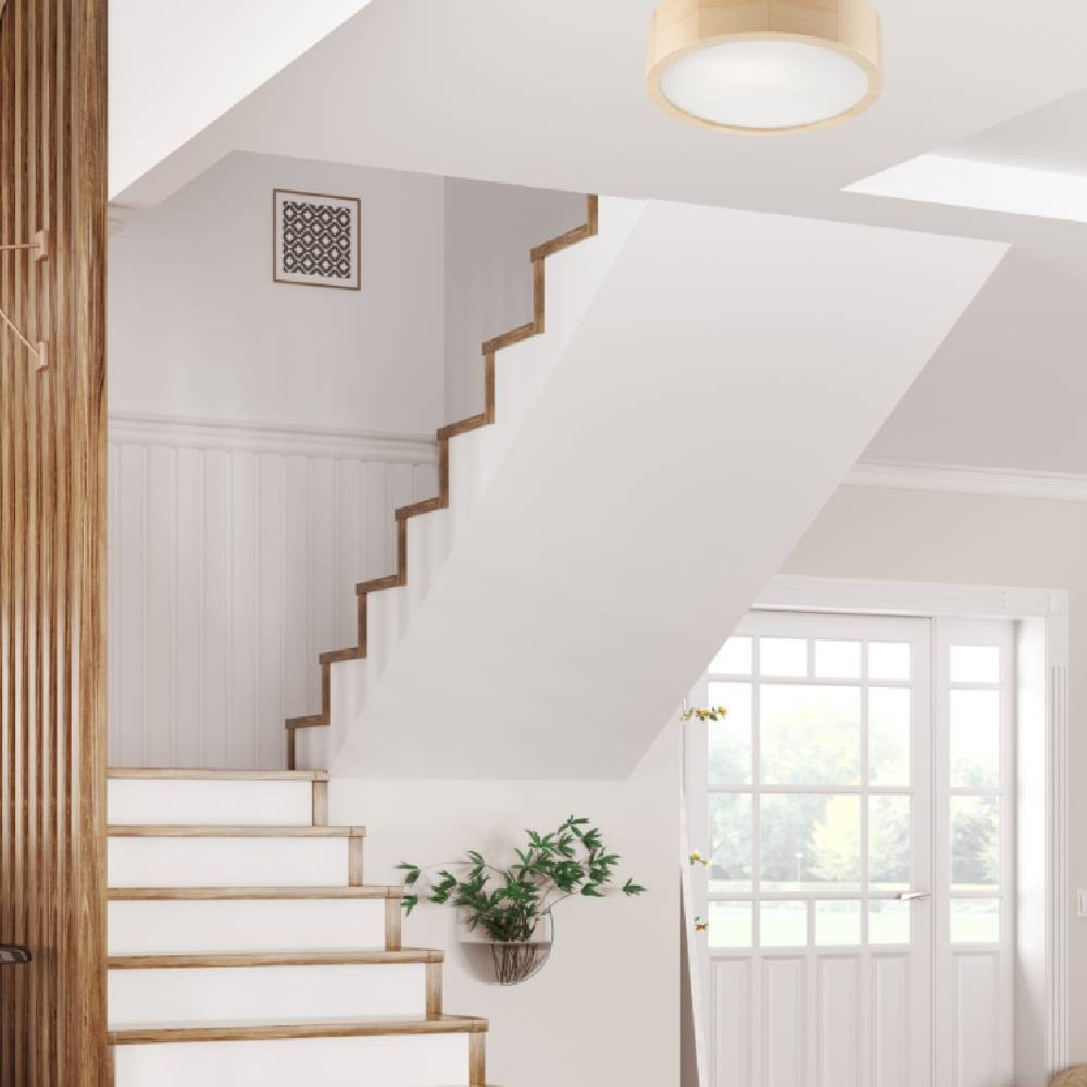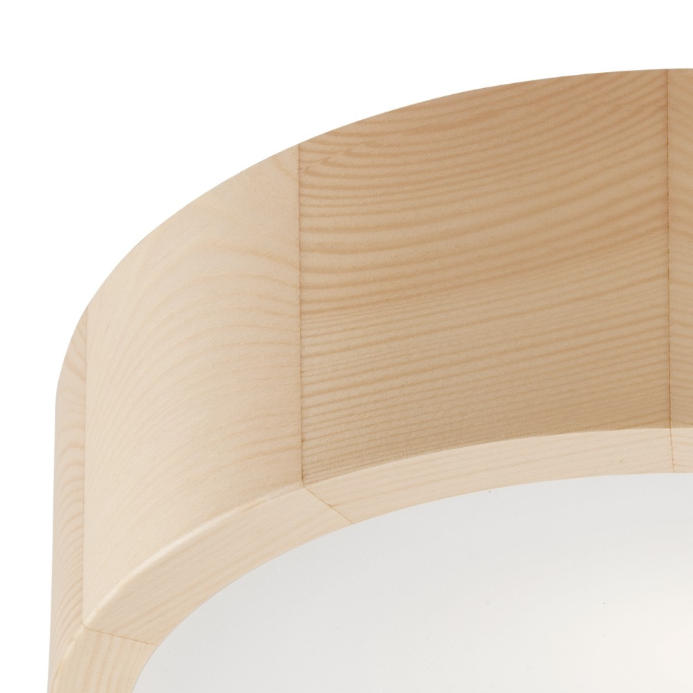 Nowoczesny, elegancki, starannie wykonany 1-płomienny plafon sufitowy w kształcie walca o średnicy 28 cm wykonany z prawdziwego giętego drewna sosnowego.