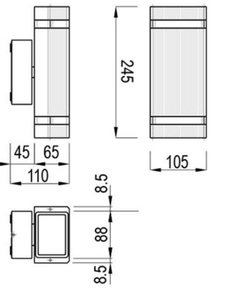 Oprawa spełnia funkcję dekoracyjną. Służy do oświetlenia podjazdów, drzwi wejściowych, schodów, ścianbudynku, tarasów oraz murów. Stosowana do zewnętrznego jak również wewnętrznego montażuw warunkach o podwyższonym poziomie wilgotności i zapylenia. Obudowa oprawy wykonana jest ze stopualuminium a szyba z hartowanego szkła