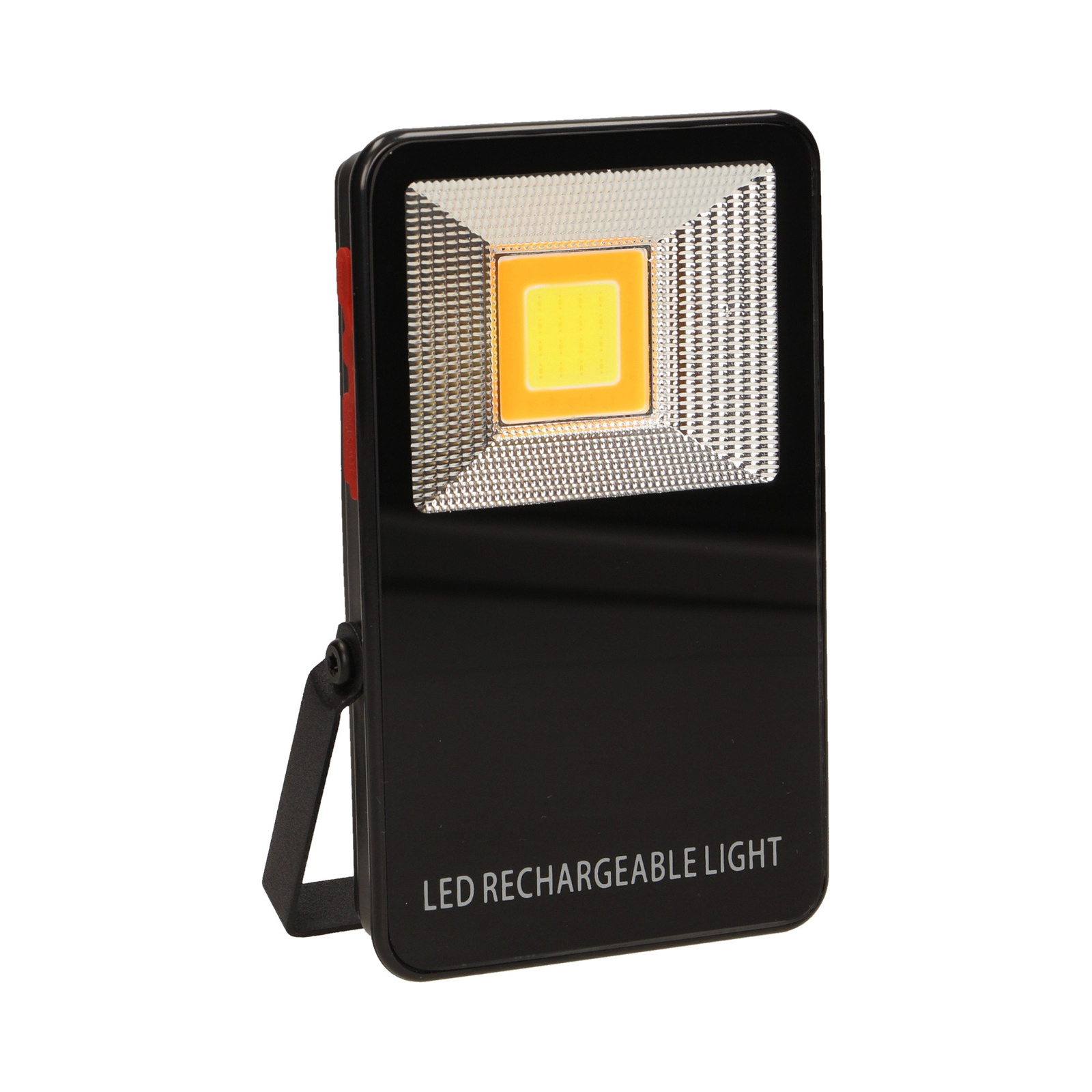 Naświetlacz przenośny LED z wbudowanymi akumulatorem litowo-jonowym 5400mAh, przeznaczony do oświetlenia prac wykonywanych na zewnątrz, w domu, garażu, piwnicy, samochodzie, na kempingu itp. Wyposażony w nowoczesną diodę LED COB, w światło alarmowe (pomarańczowe diody LED), ładowarkę USB oraz podstawkę do ustawienia na płaskiej powierzchni. 4 tryby pracy: mocne światło/średnie światło/SOS/Power Bank z funkcją szybkiego ładowania. Wyjście ładowarki USB: 5VDC/1A.