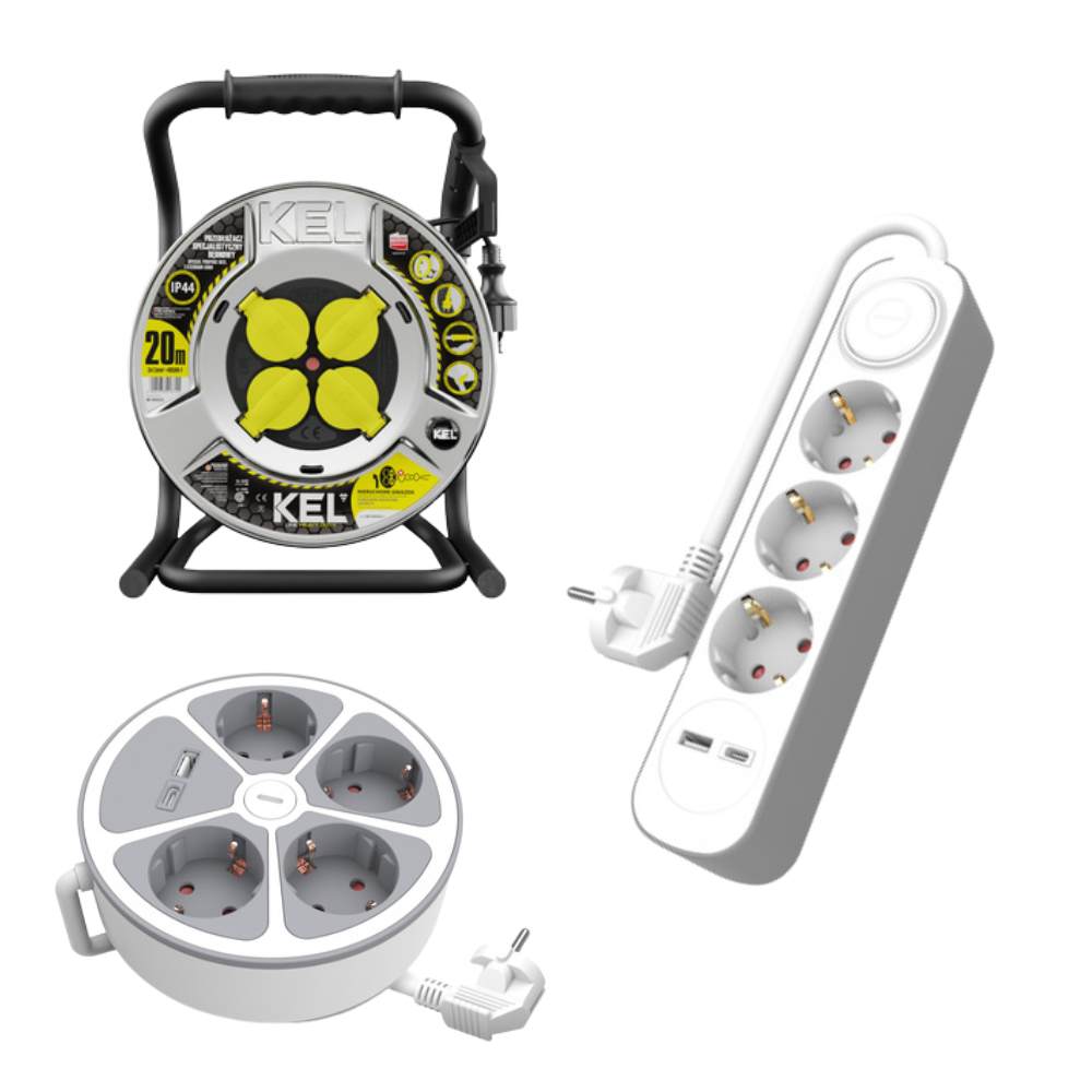 W kategorii przedłużaczy pojawiło się najwięcej nowości, zarówno do użytku domowego, jak i profesjonalnego. Przedłużacze z bolcem uziemiającym oraz Schuko dostępne są z ilością gniazd od dwóch aż do sześciu . W asortymencie zagościły również nowe modele przedłużaczy bębnowych. Komfort pracy dzięki możliwości wyboru długości przewodu, ilości oraz zabezpieczeniu gniazd. Podczas prac, które wymagają większej ilości podłączonych sprzętów, pomocne są przedłużacze trójdrożne.