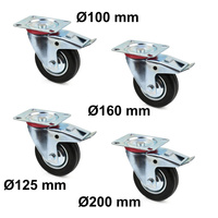( ilość produktów: 5 )Koło obrotowe skrętne stalowe/gumowe z hamulcem 100/125/160 lub 200 mm G71519