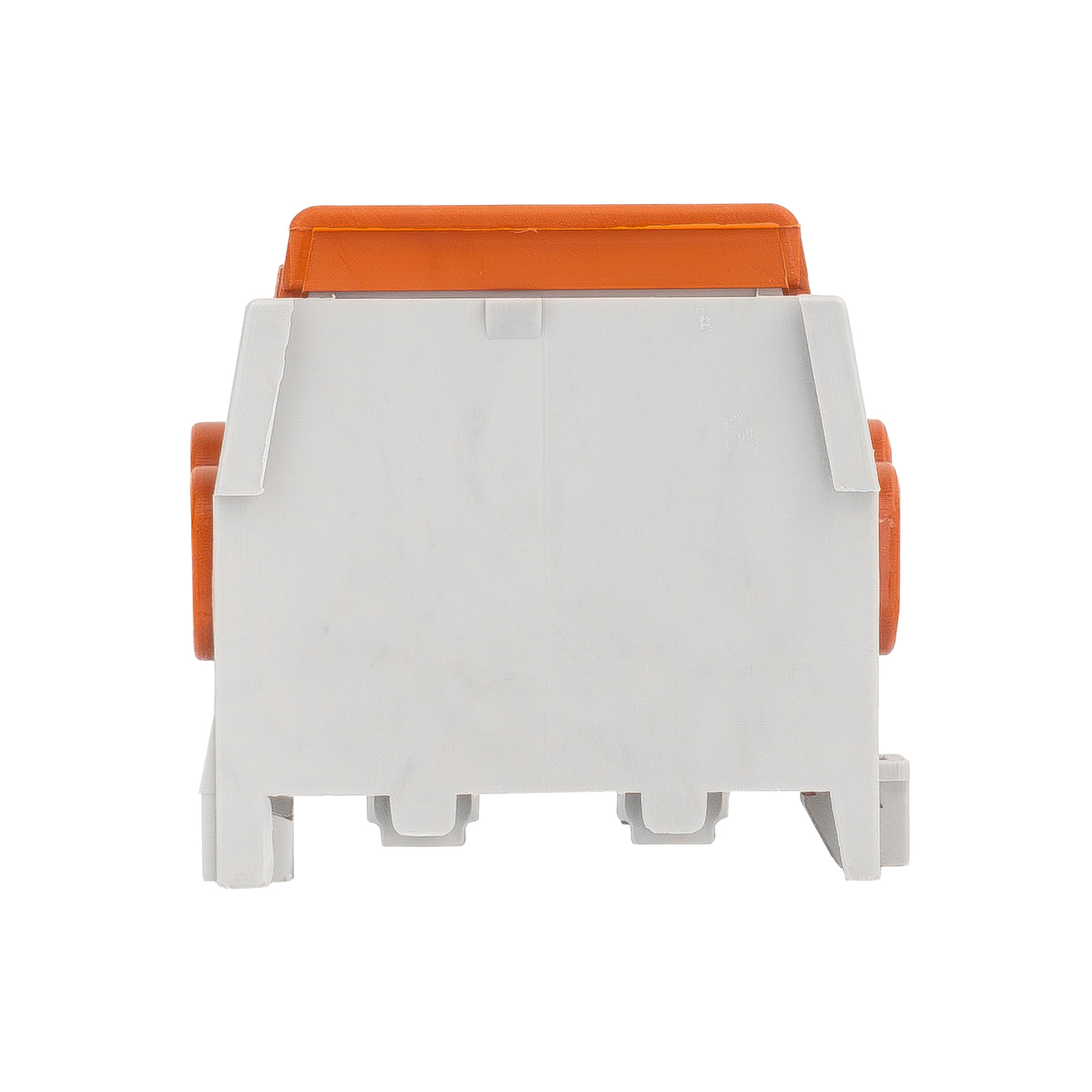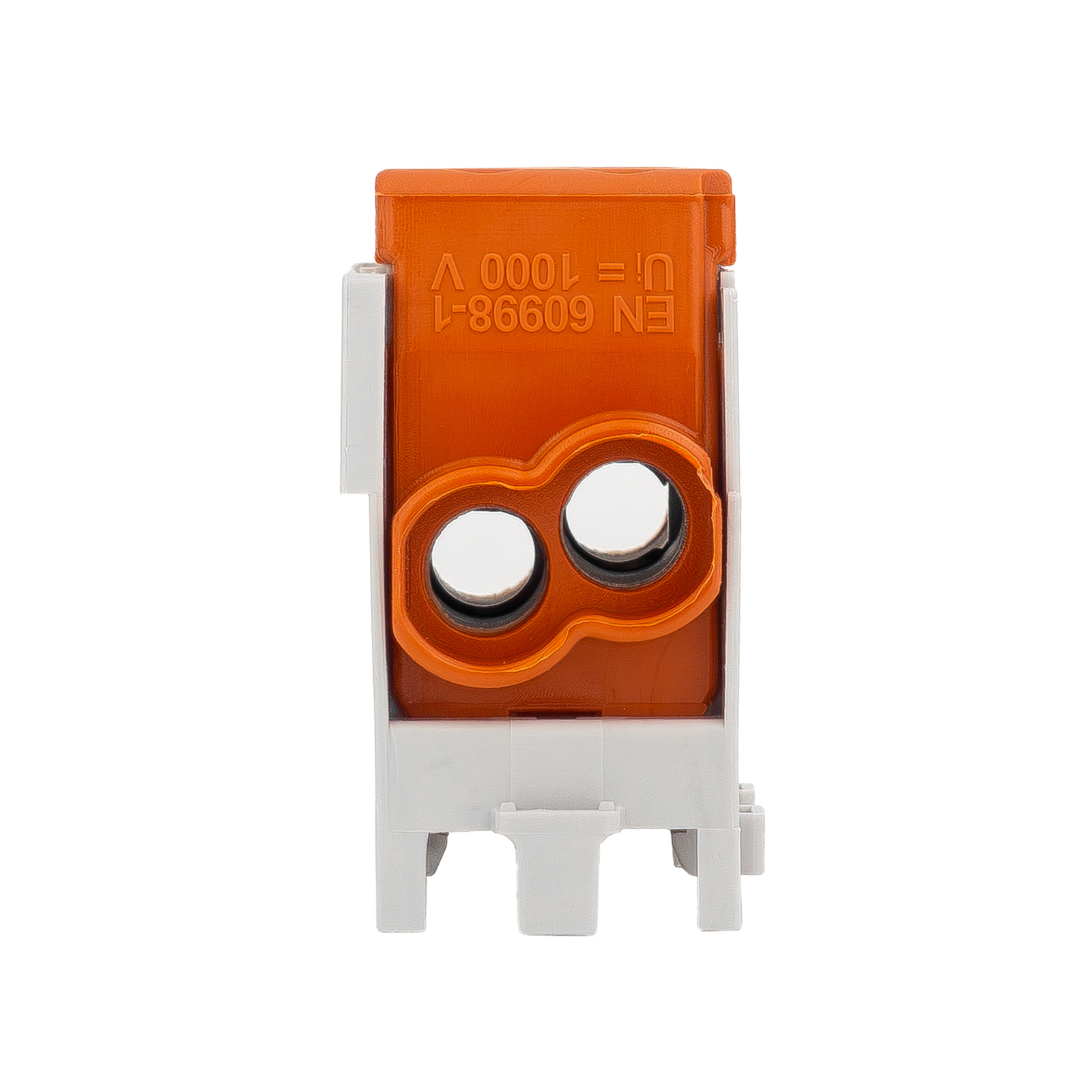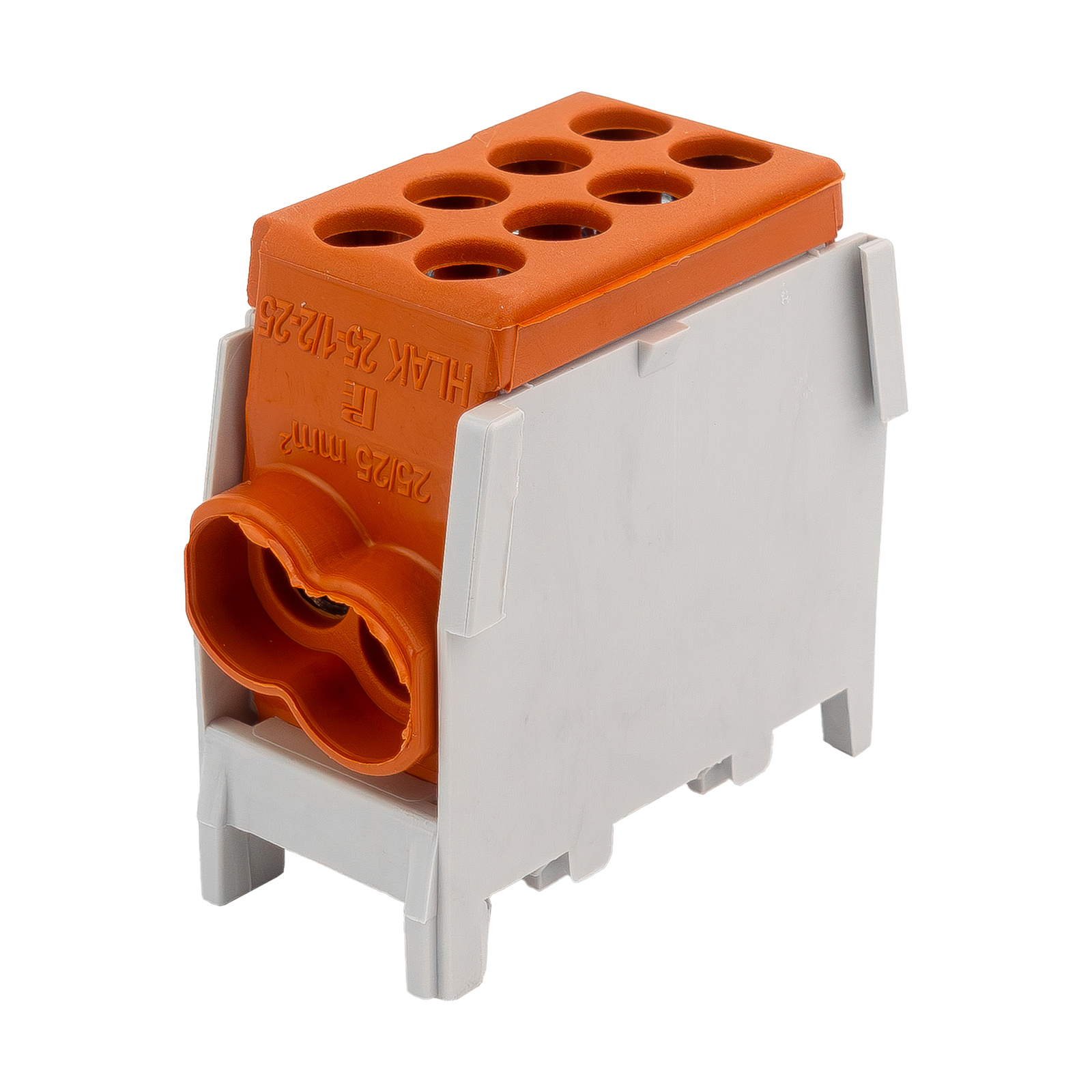 - Jednobiegunowy odgałęźny blok rozdzielczy 1P 1,5-25 mm marki Pollmann w kolorze brązowym do montażu na szynie DIN TH-35.