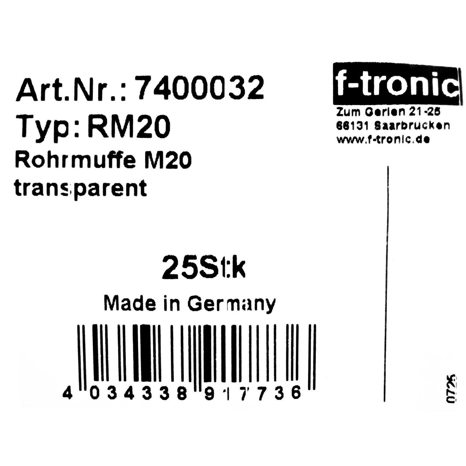 F-tronic Złączka do rur karbowanych M20 przezroczysta 1 sztuka mufa 7400032