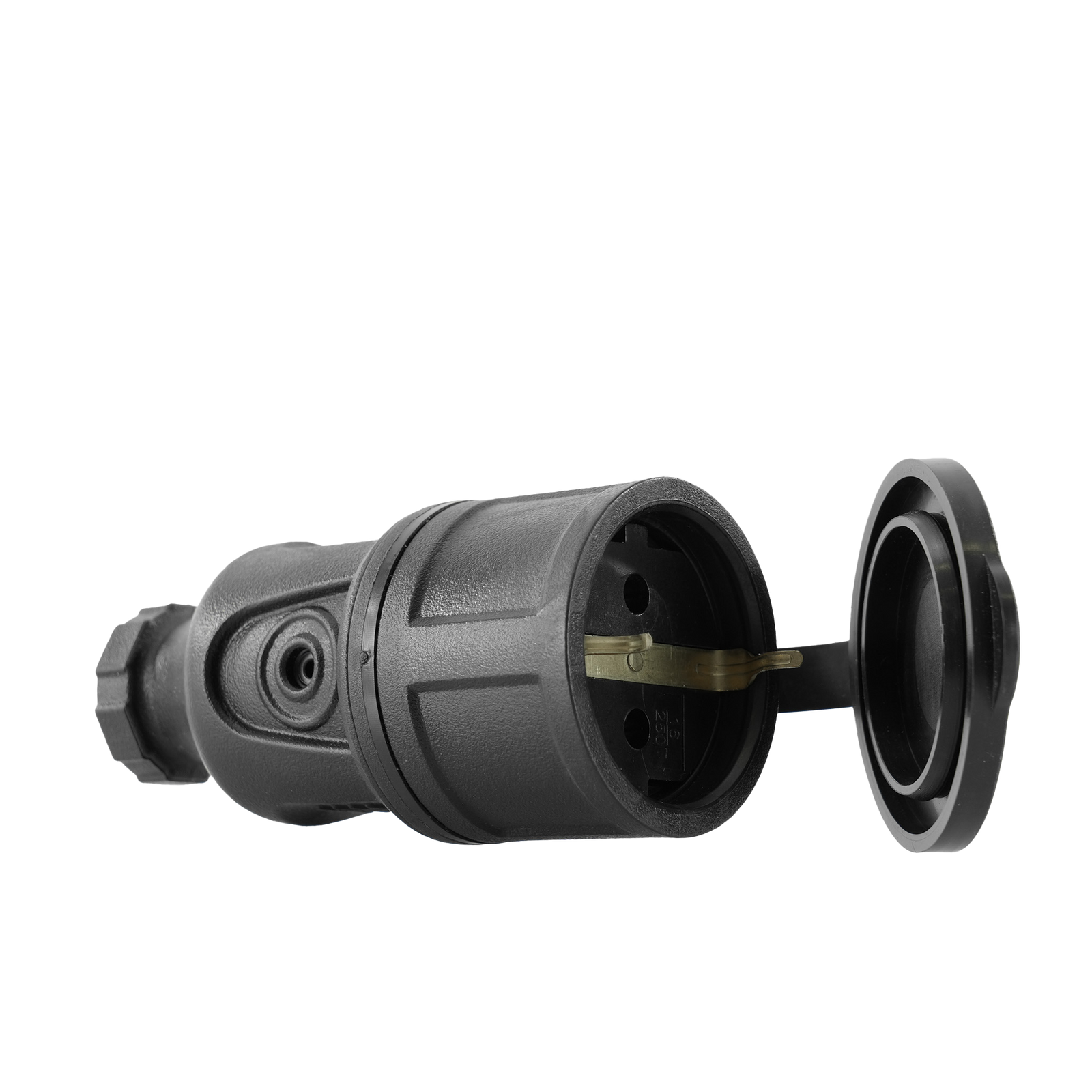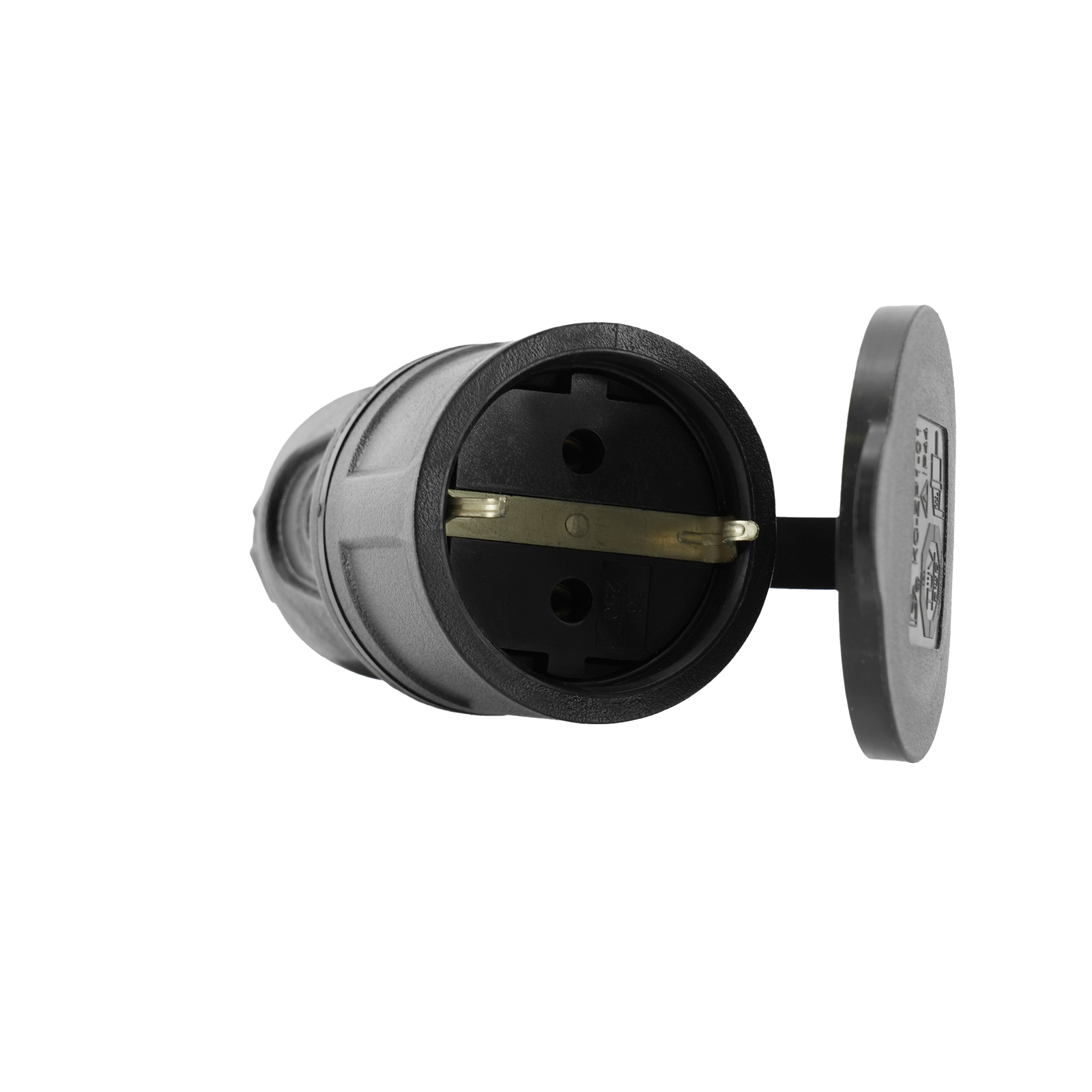 Gniazdo przenośne 230V Schuko 2P+Z IP44 16A z uziemieniem czarne W-89996