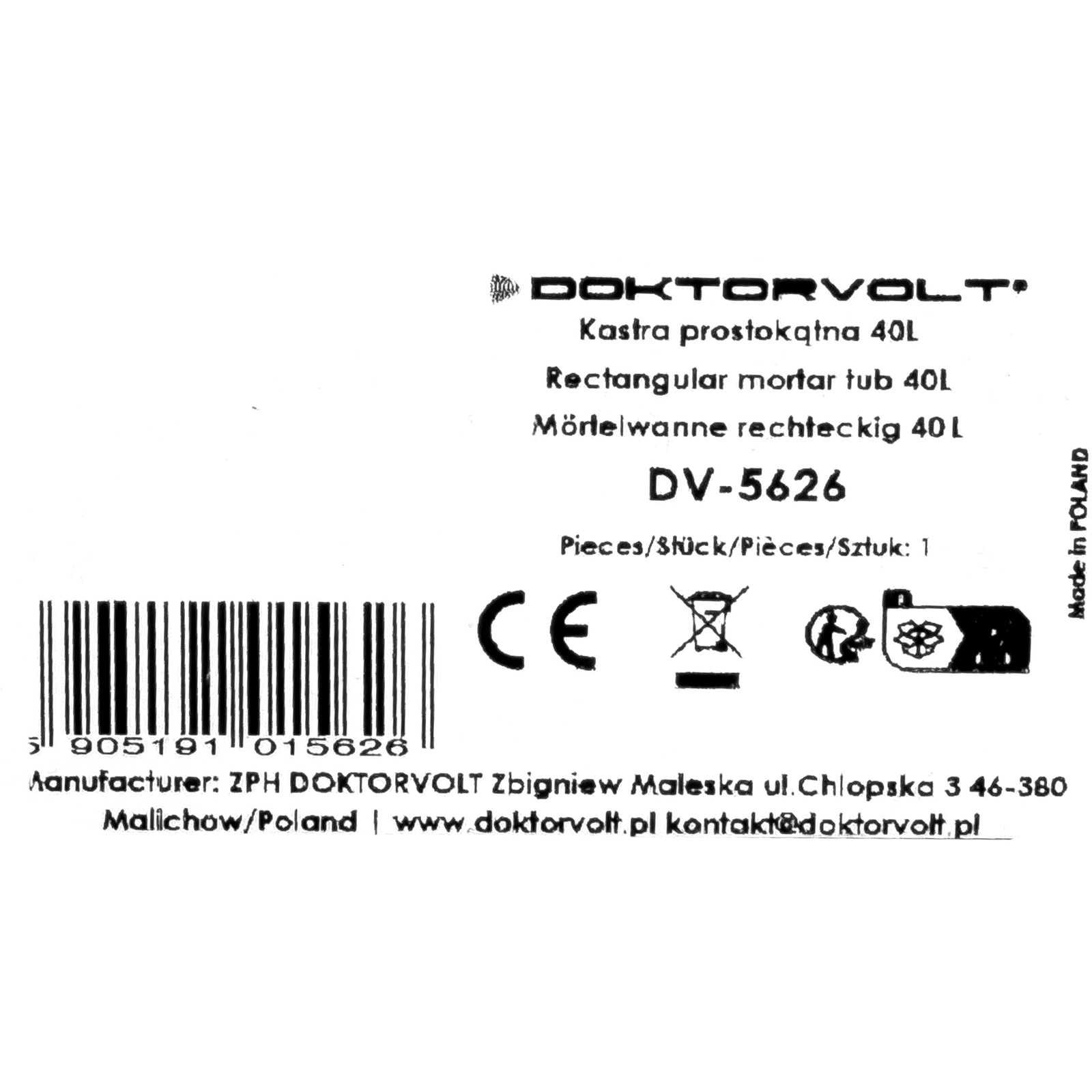 Kastra budowlana prostokątna 40L czarna z regranulatu PP/PE pojemnik na zaprawę beton klej odporna wiadro pojemnik donica kalfas DV-5626