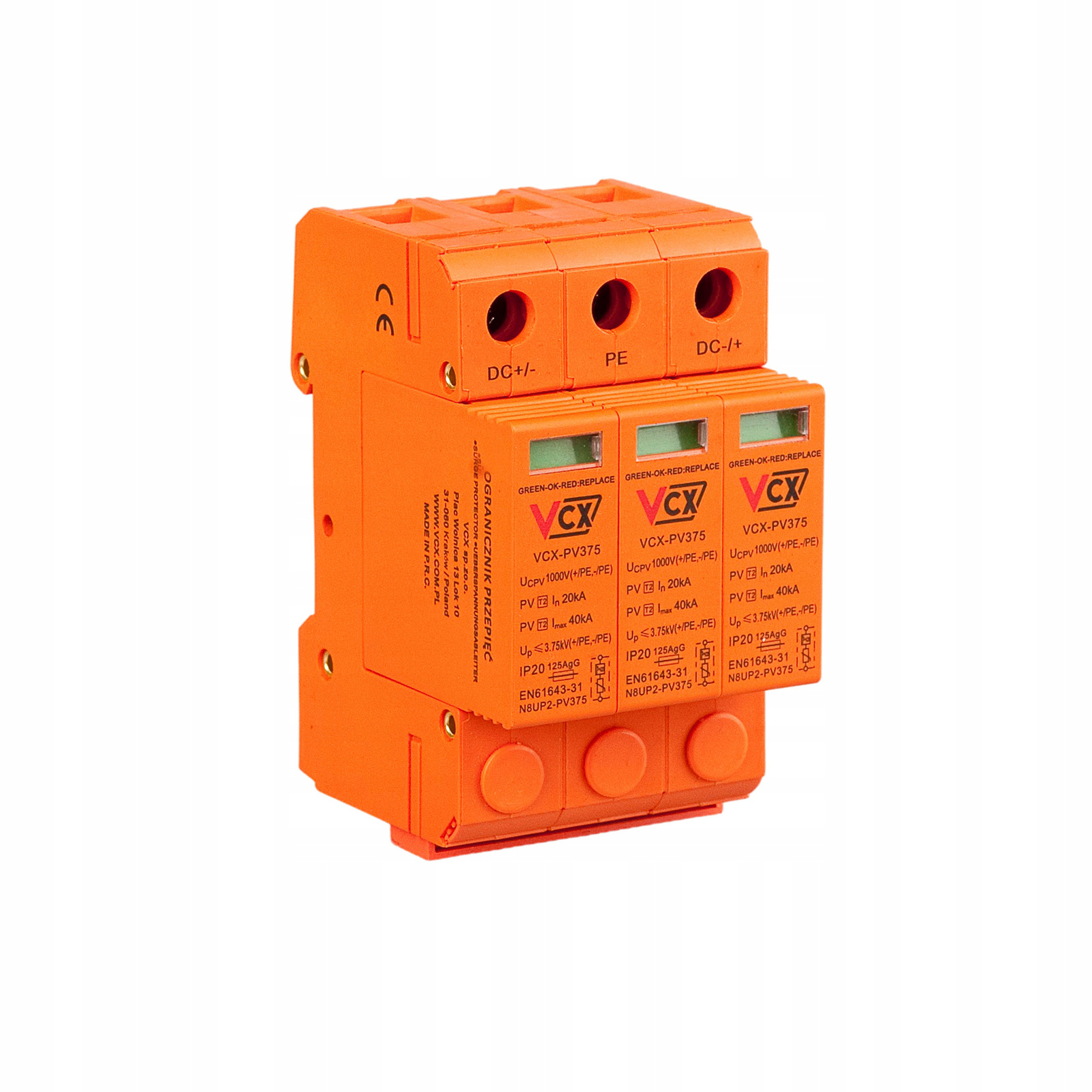 - Ogranicznik przepięć PV DC Typ C 3P 1000V T2 ochronnik przepięciowy fotowoltaiczny DC C3P 1000 PV375
