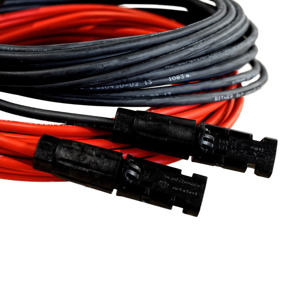 Wysokiej jakości przedłużacz do instalacji fotowoltaicznych o długości od 1 – 50 metrów (do wyboru) wraz z wtykami – konektorami kompatybilnymi z MC4 (+) i (-).