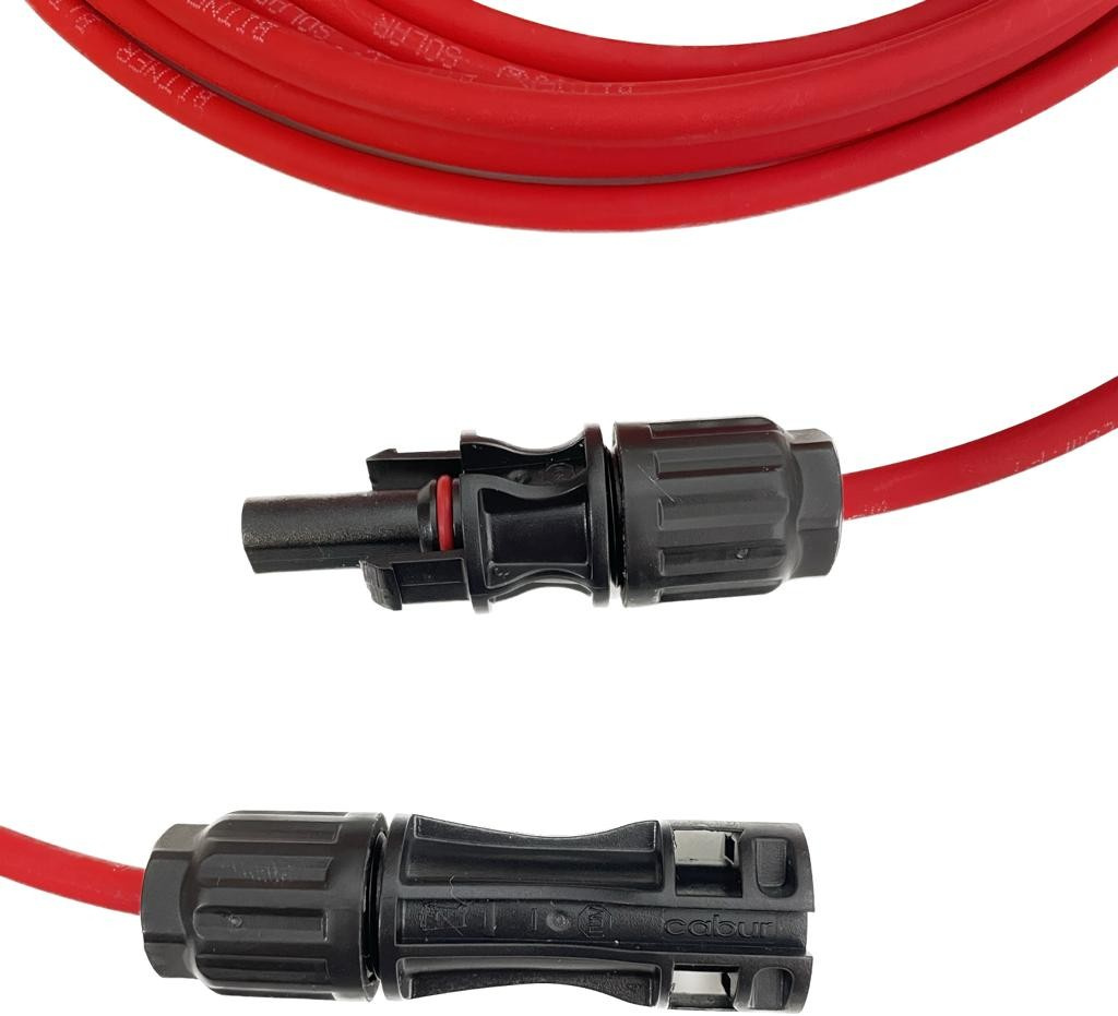 Wysokiej jakości przedłużacz do instalacji fotowoltaicznych o długości od 1 – 50 metrów (do wyboru) wraz z wtykami – konektorami kompatybilnymi z MC4 (+) i (-).