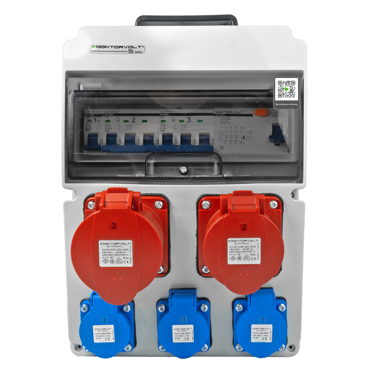 Rozdzielnica budowlana 16A 32A CEE 3x230V erbetka z uchwytem zabezpieczona Doktorvolt DV-8126-F
