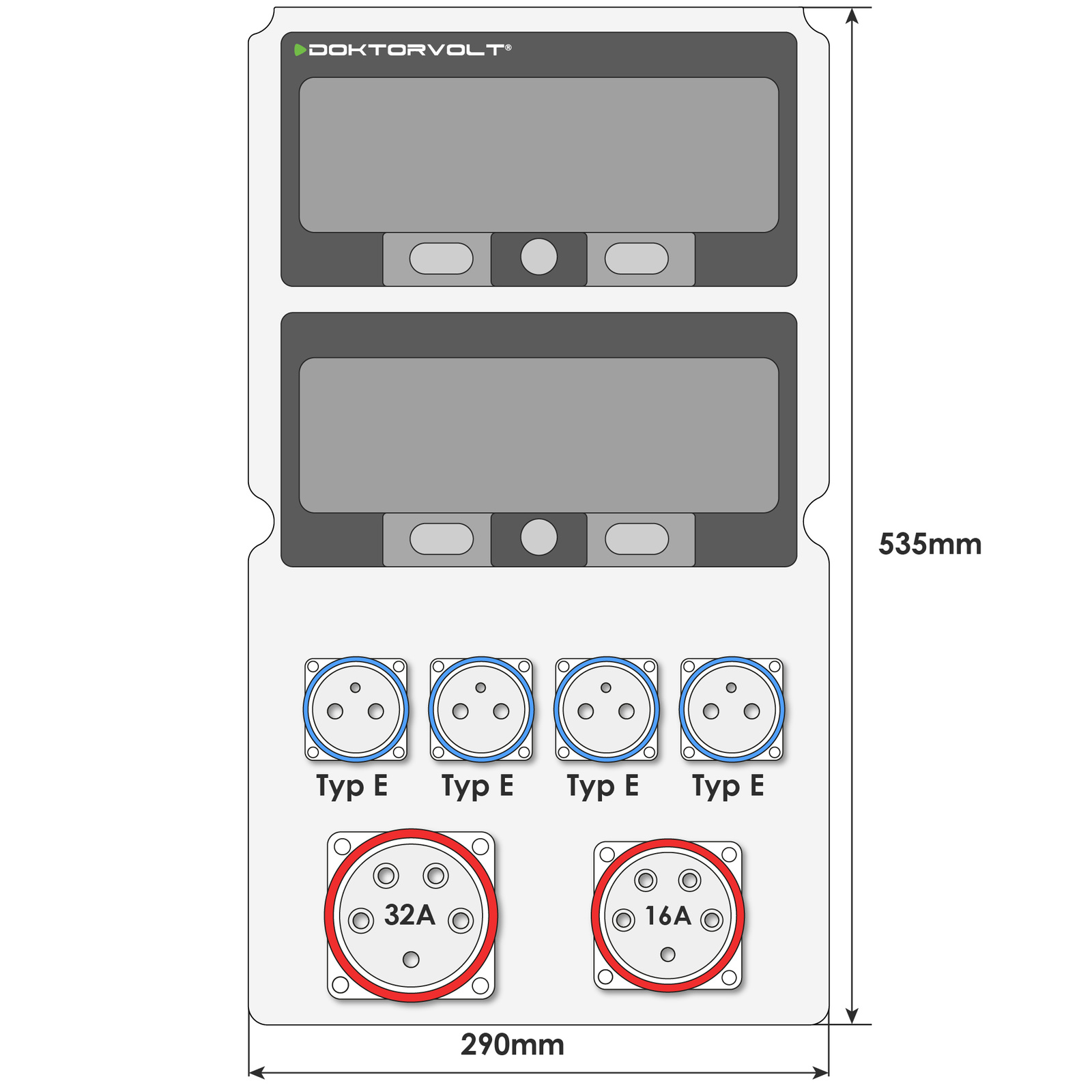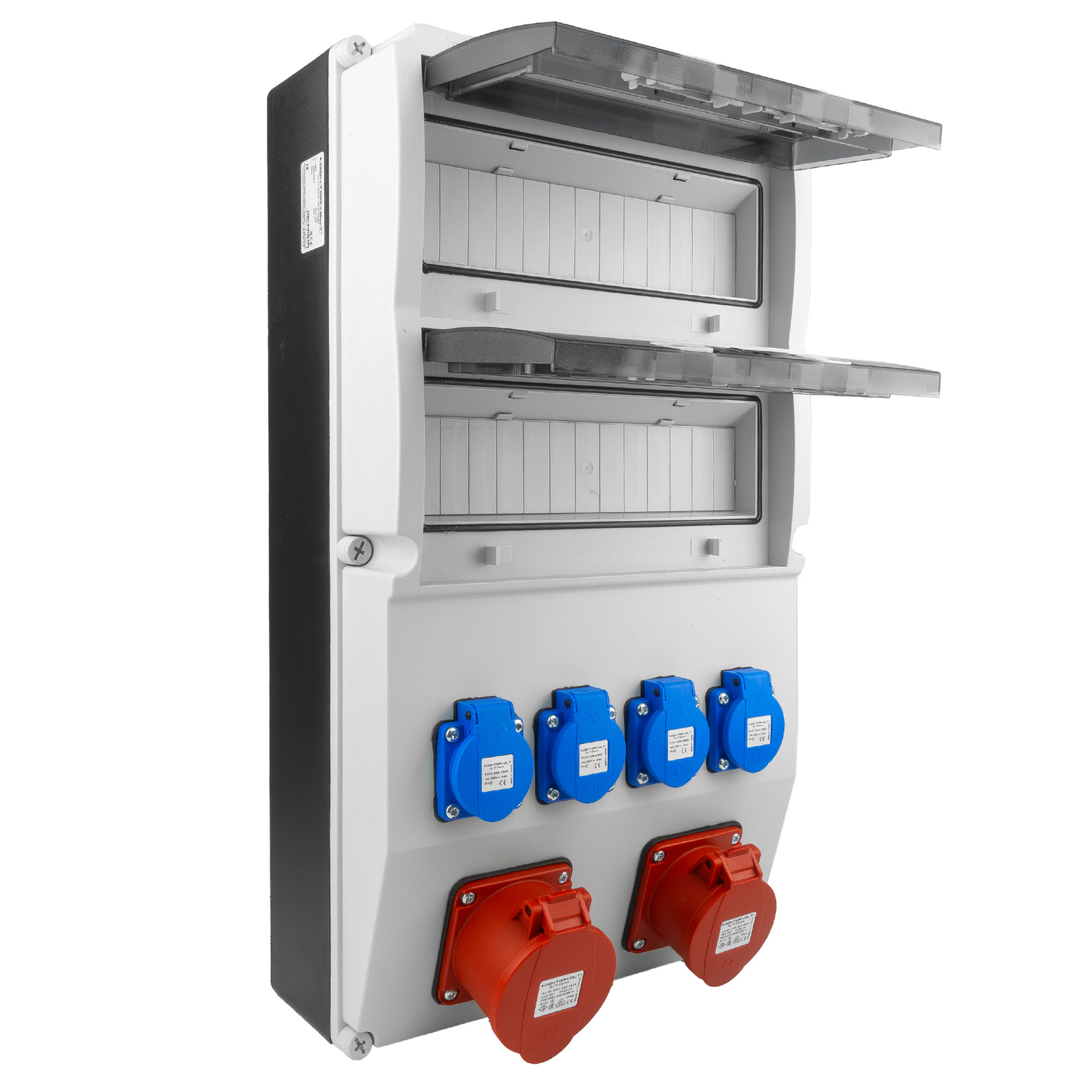 Rozdzielnica budowlana 16A 32A CEE 4x230V dwa okienka rewizyjne 26 modułów Doktorvolt eXT DV-5312-F