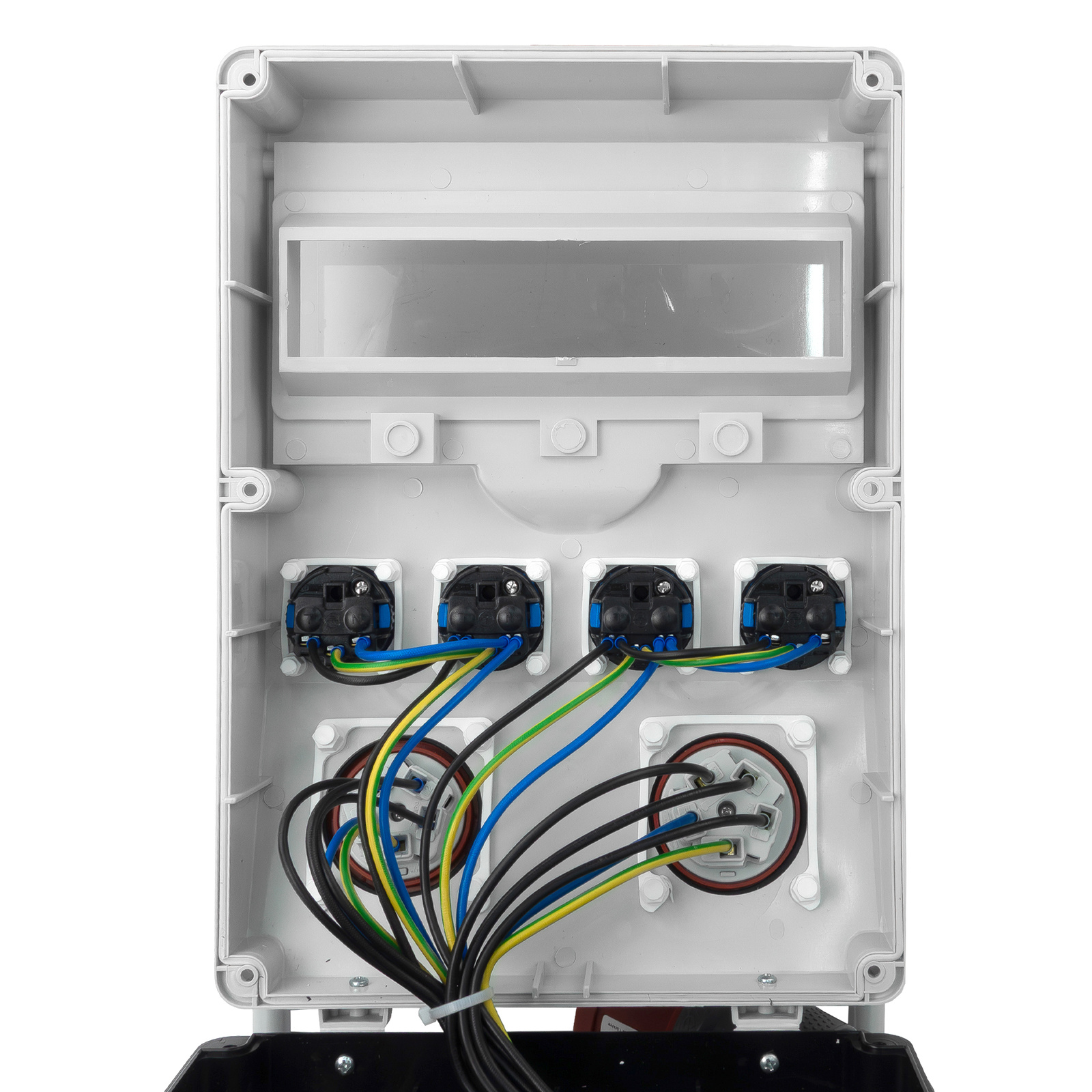 Wytrzymała rozdzielnica budowlana IP44 z 4x230V oraz 2 gniazdami CEE 400V. Wykonana z wysokiej jakości materiałów . Erbetka została wyposażona w 12 modułowe okienko rewizyjne oraz zabezpieczenia marki Doktorvolt. Do rozdzielnicy dołączona została wtyczka 32A oraz stabilny stojak zapewniający bezpieczne umieszczenie rozdzielnicy.
