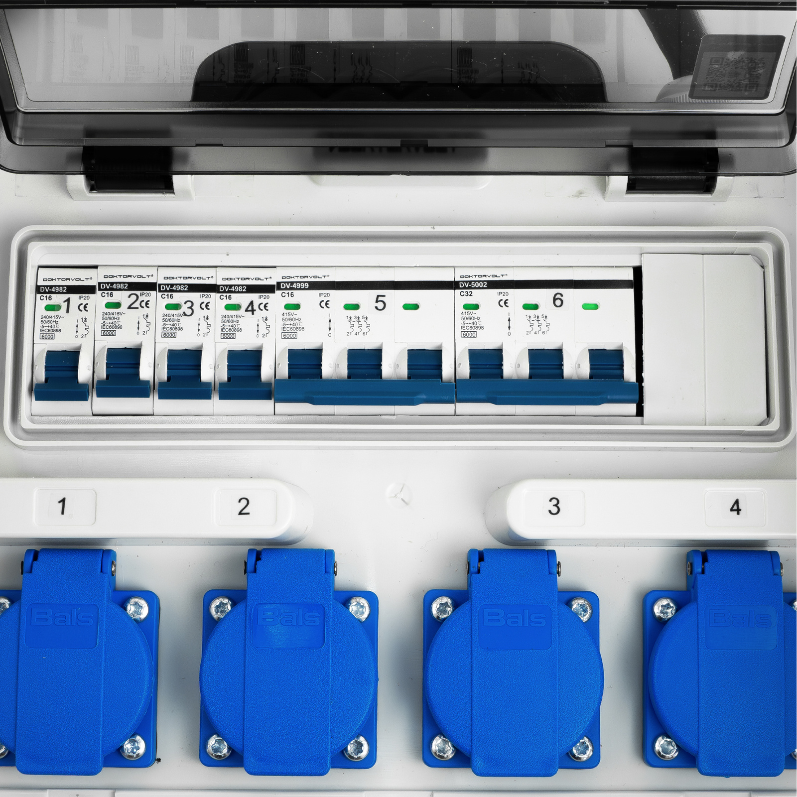 - Rozdzielnica budowlana zabezpieczona wyłącznikami nadprądowymi. Okienko rewizyjne ułatwiające pracę z erbetką. Wyposażona w trzy gniazda CEE oraz cztery gniazda 230V z bolcem ochronnym. Dodatkowym wyposażeniem jest metrowy przewód z wtyczką CEE.