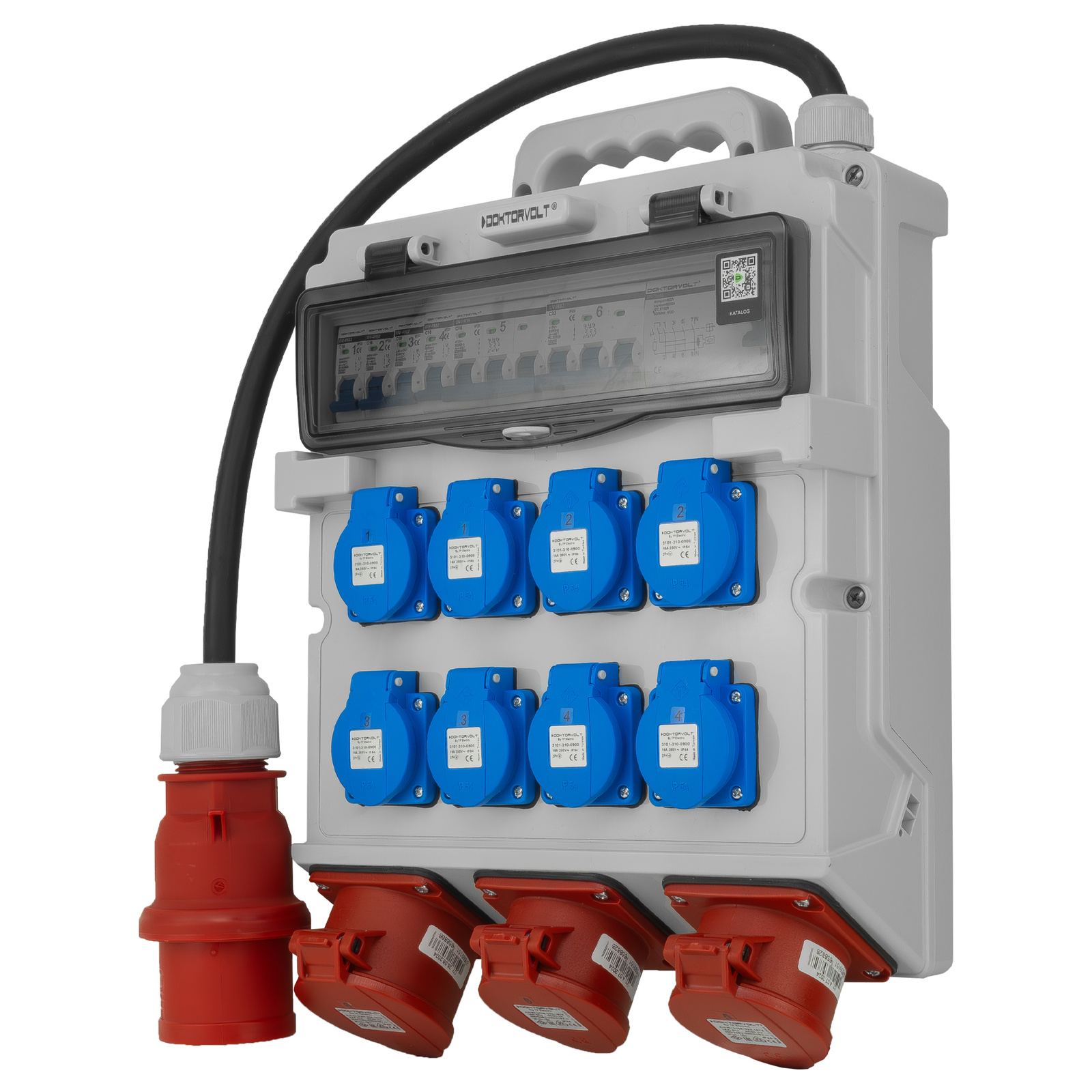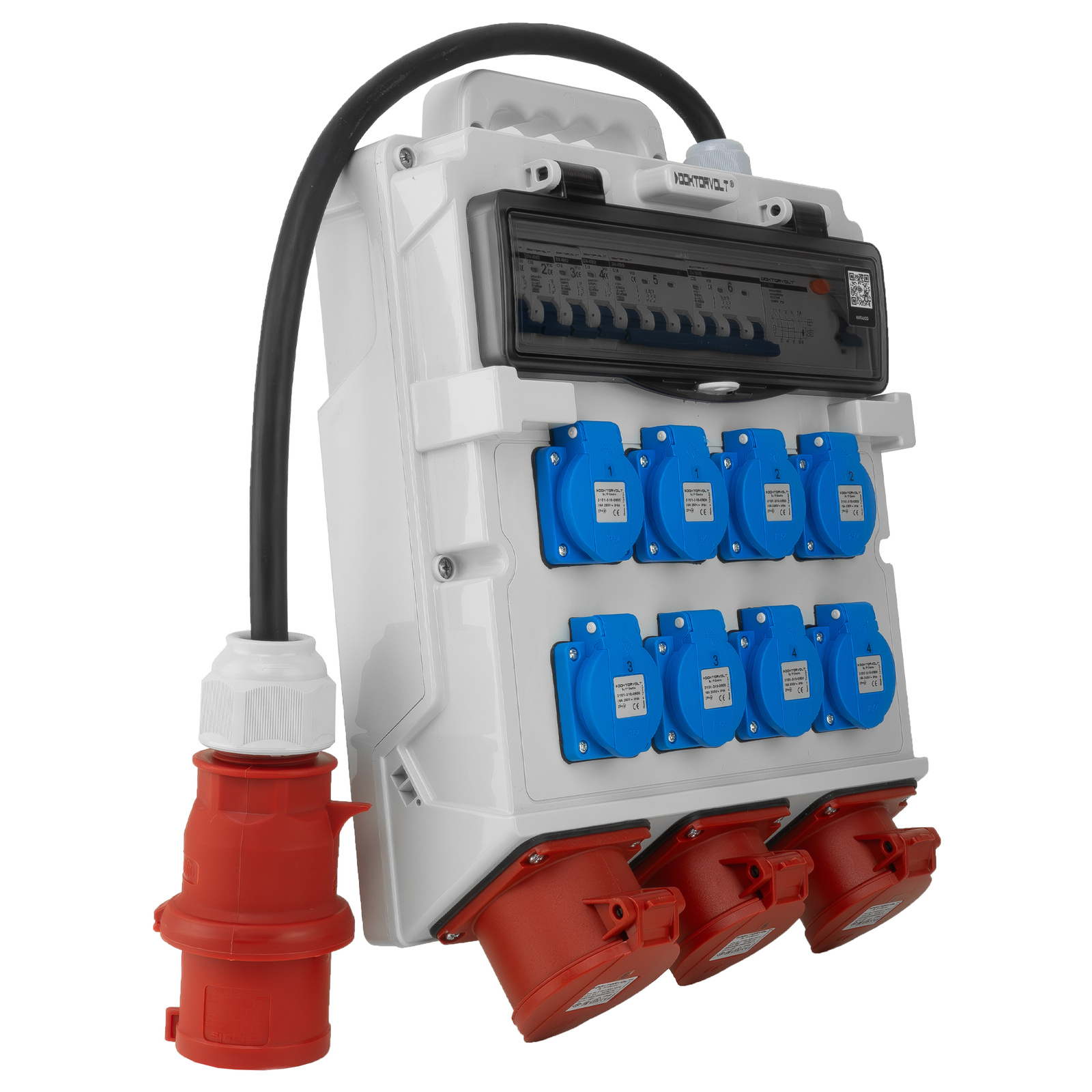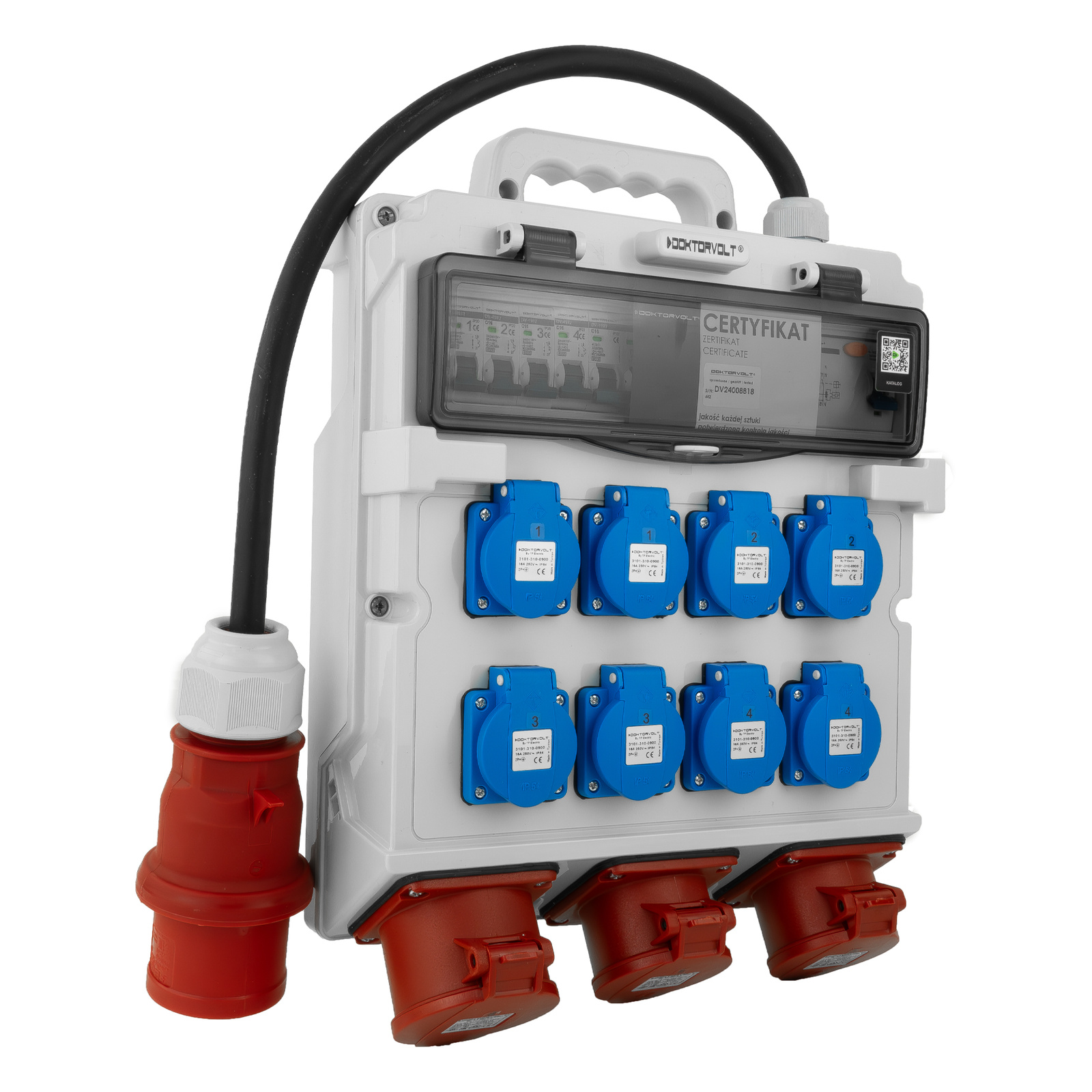 Rozdzielnica budowlana 2x16A 32A CEE 8x230V erbetka z kablem zabezpieczona Doktorvolt TR-S/FI DV-5022-D