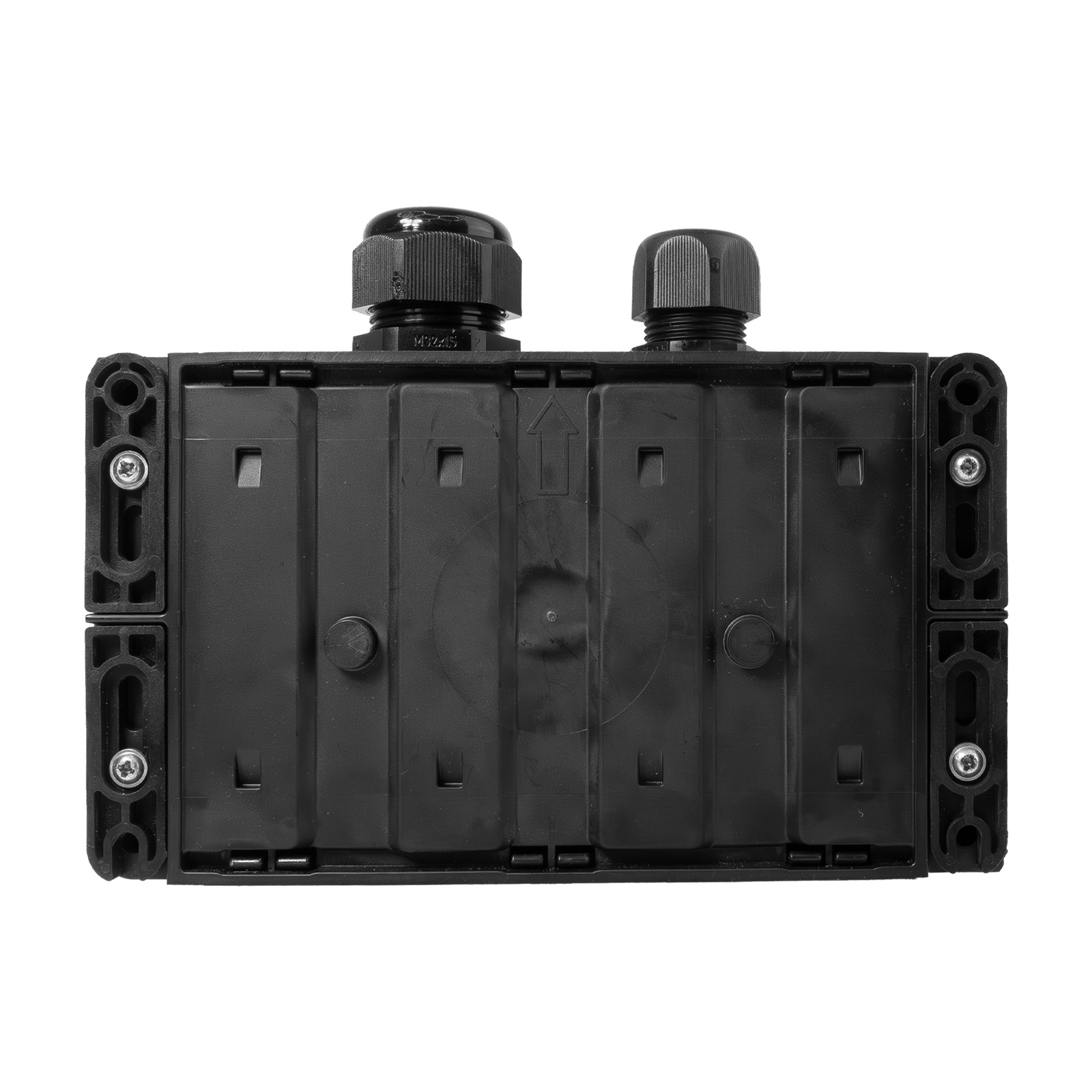 Wprowadzenie kabla / wejście: 1 x M25, 1 x M32 od góry / 1 x M25, 1 x M32 od dołu / 1 x Listwa zaciskowa 3x4 mm² (gniazdo jednofazowe) / 1 x Listwa zaciskowa 5x6 mm² (gniazdo CEE)