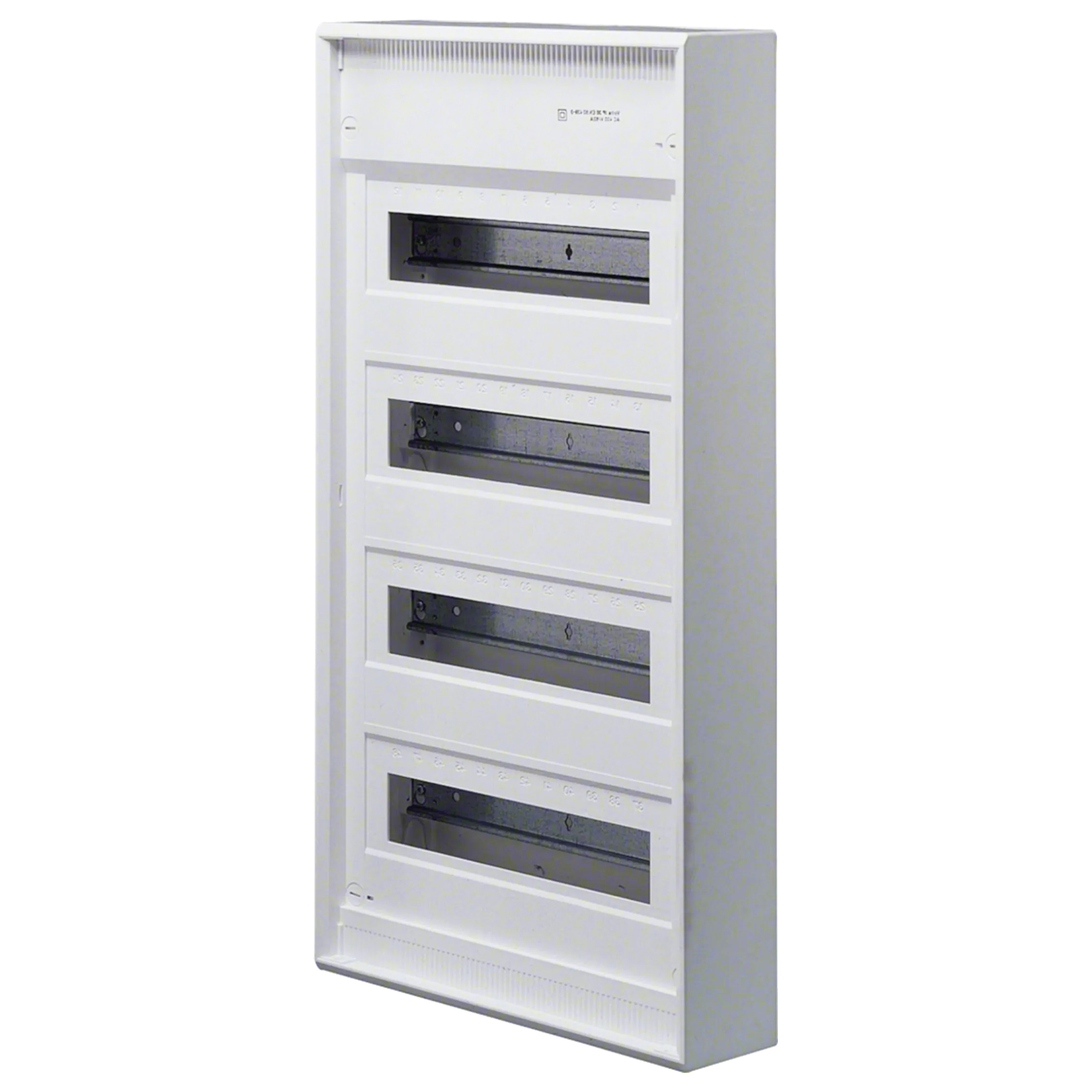 Skrzynka elektryczna firmy Hager bez drzwi o wymiarach 640x305x96,50mm. Zaprojektowana do użytku wewnętrznego w kolorze białym RAL 9010. Wyposażona w 4 rzędy o łącznej liczbie 48 modułów.