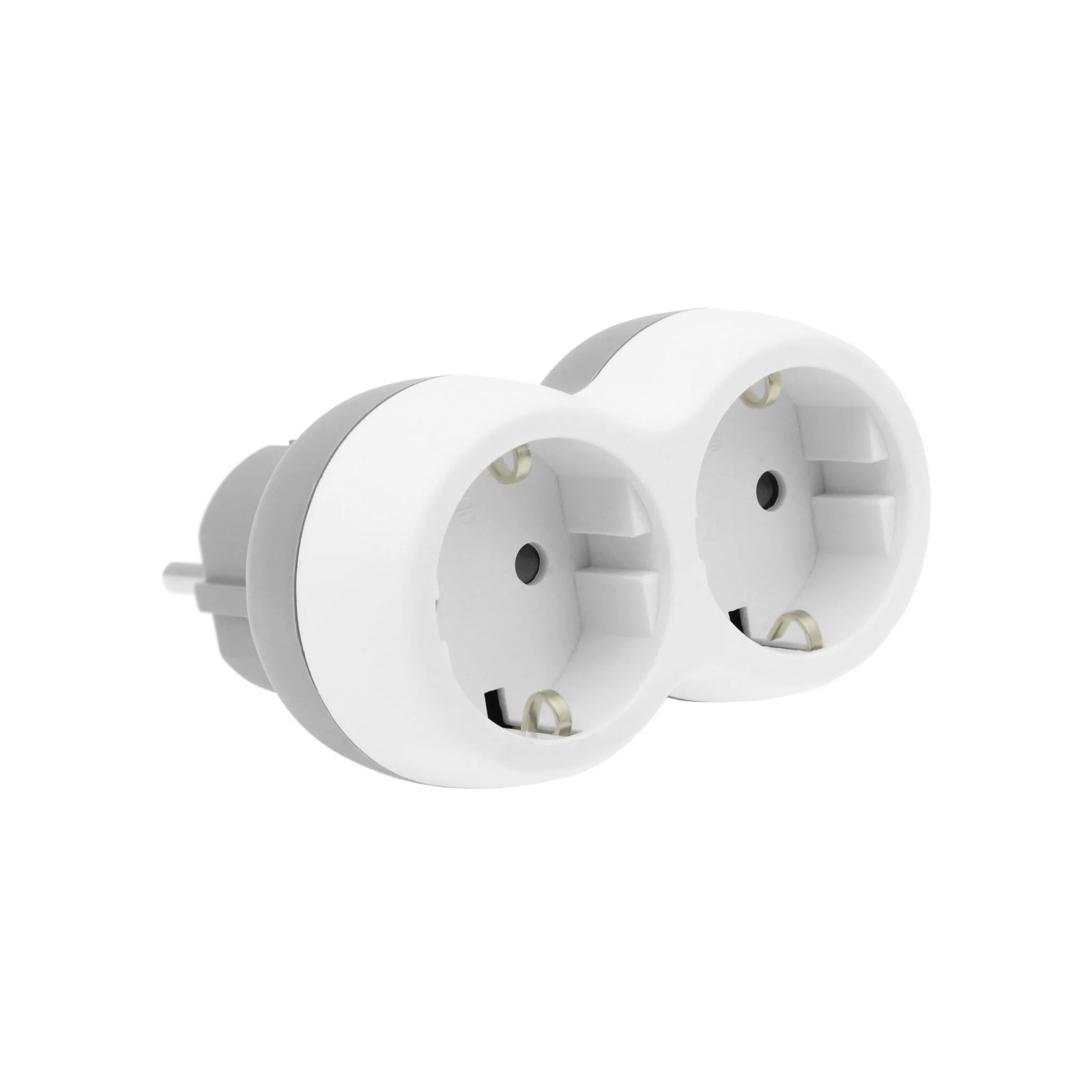 Rozgałęźnik wtyczkowy 2x gniazdo 230V Schuko z uziemieniem szaro-biały W-72004