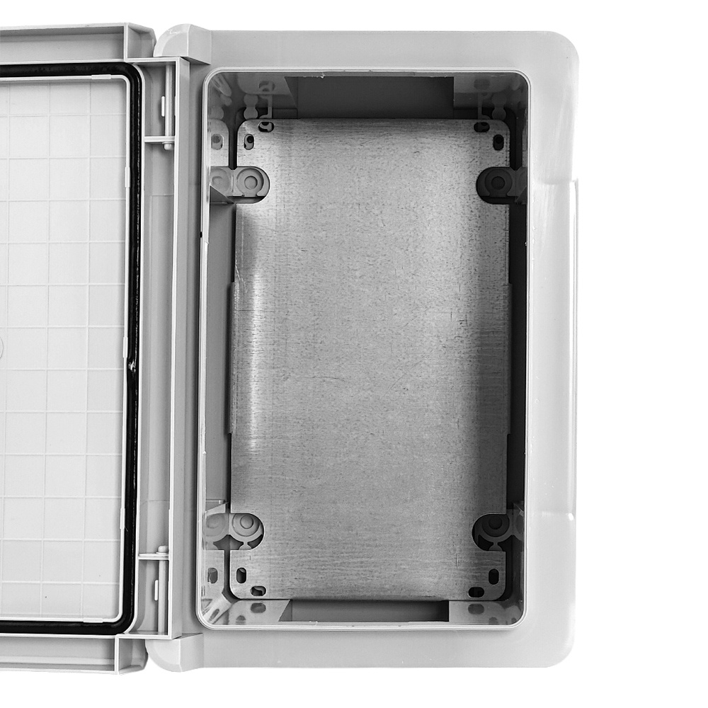 - Obudowa 200x300x130mm TP Electric do montażu urządzeń modułowych na płycie montażowej. Stopień ochrony skrzynki rozdzielczej IP65. Wykonana z wysokiej jakości tworzywa ABS i poliwęglanu. Klasa odporności IK10.