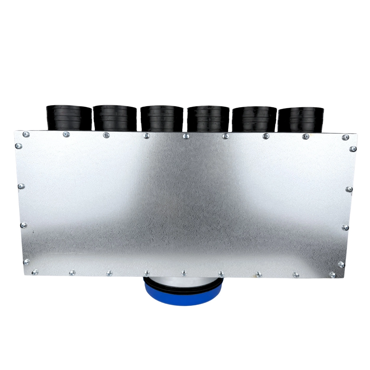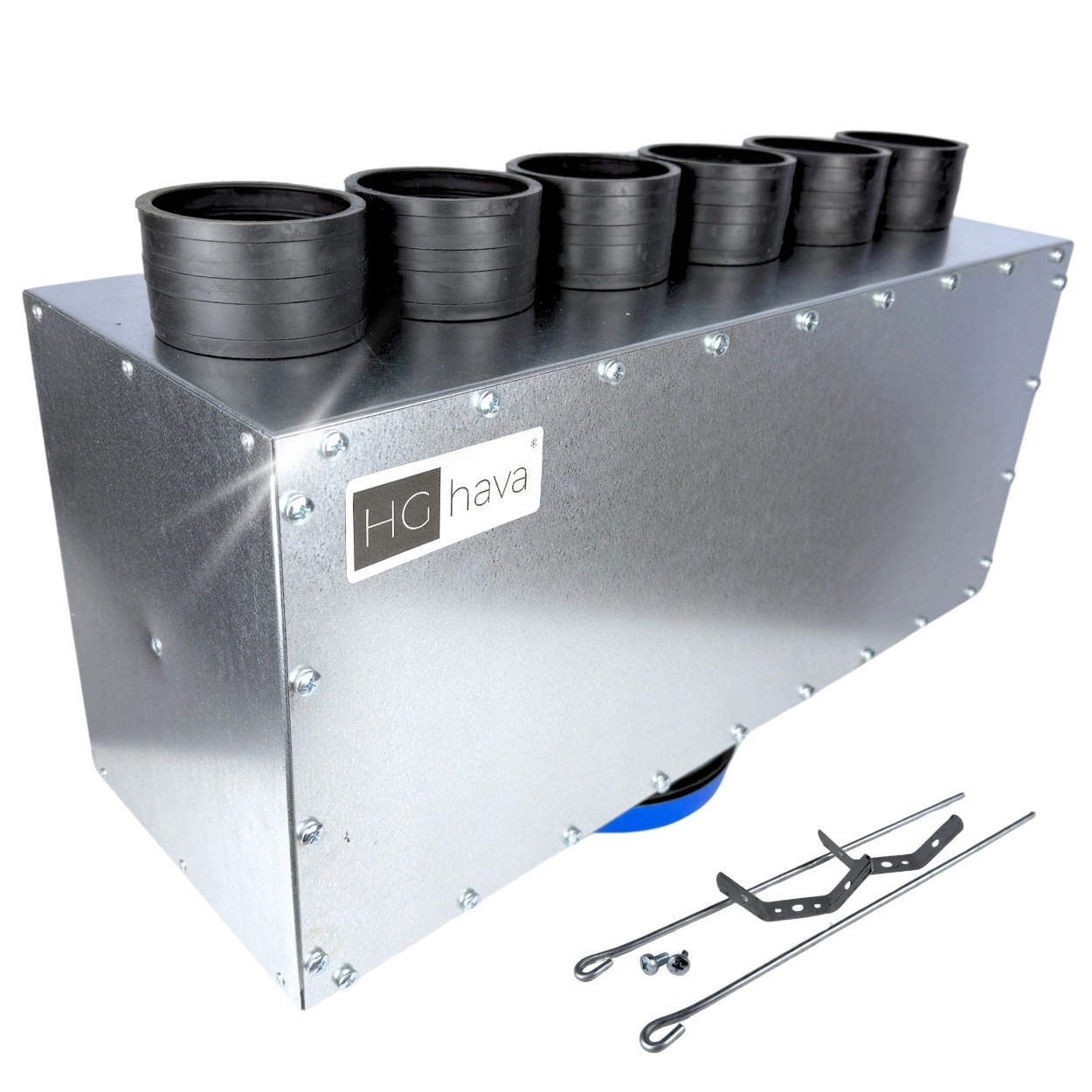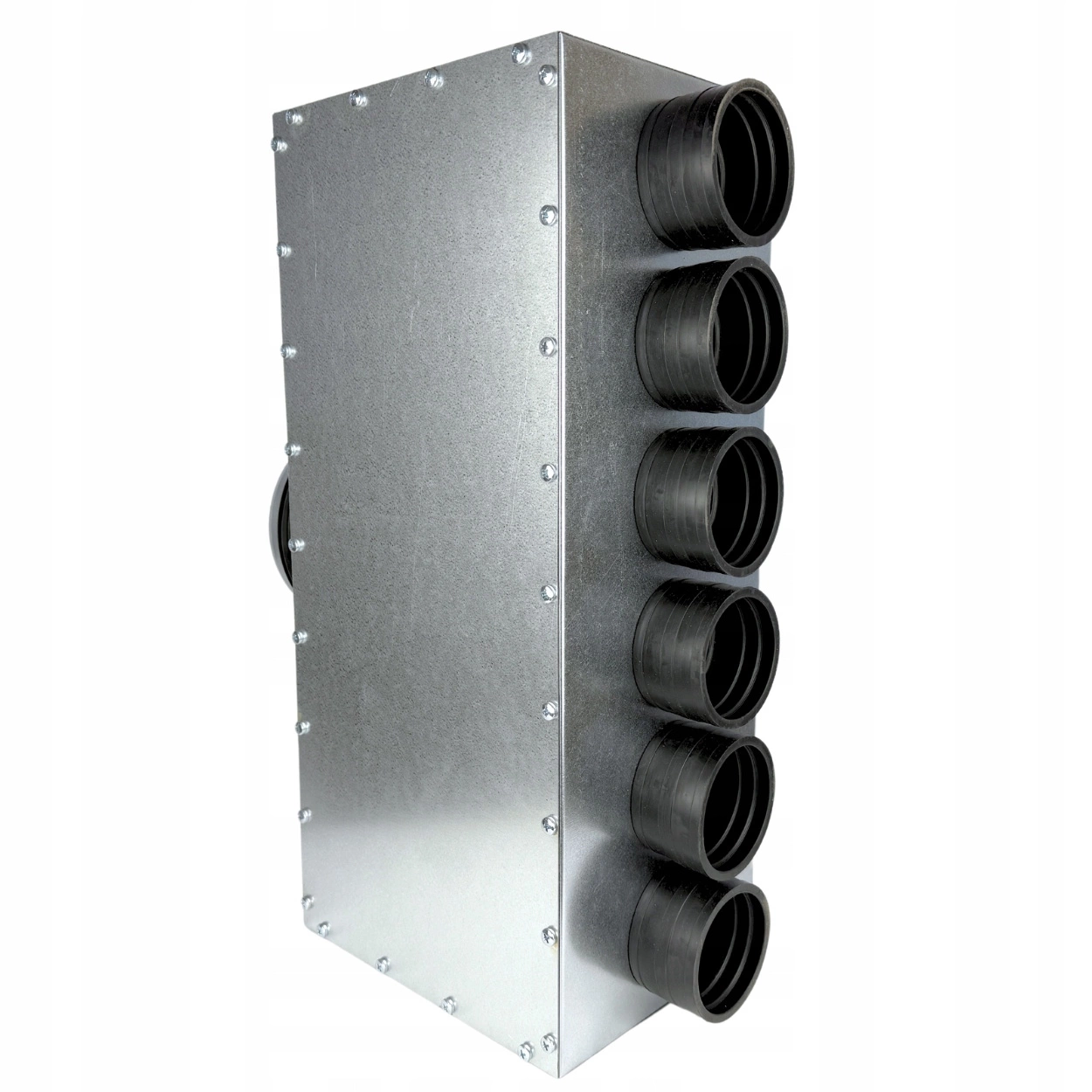 • Rozdzielacz przelotowy z 6 króćcami Ø75 mm i przyłączem Ø160 mm. Tłumiony, uszczelniony matą antybakteryjną, bezuszczelkowy. Stal ocynkowana odporna na korozję. Idealny do systemów nawiewno-wywiewnych i rekuperacji.