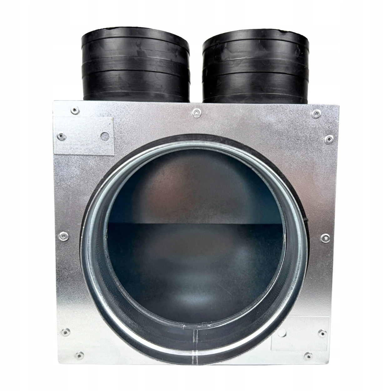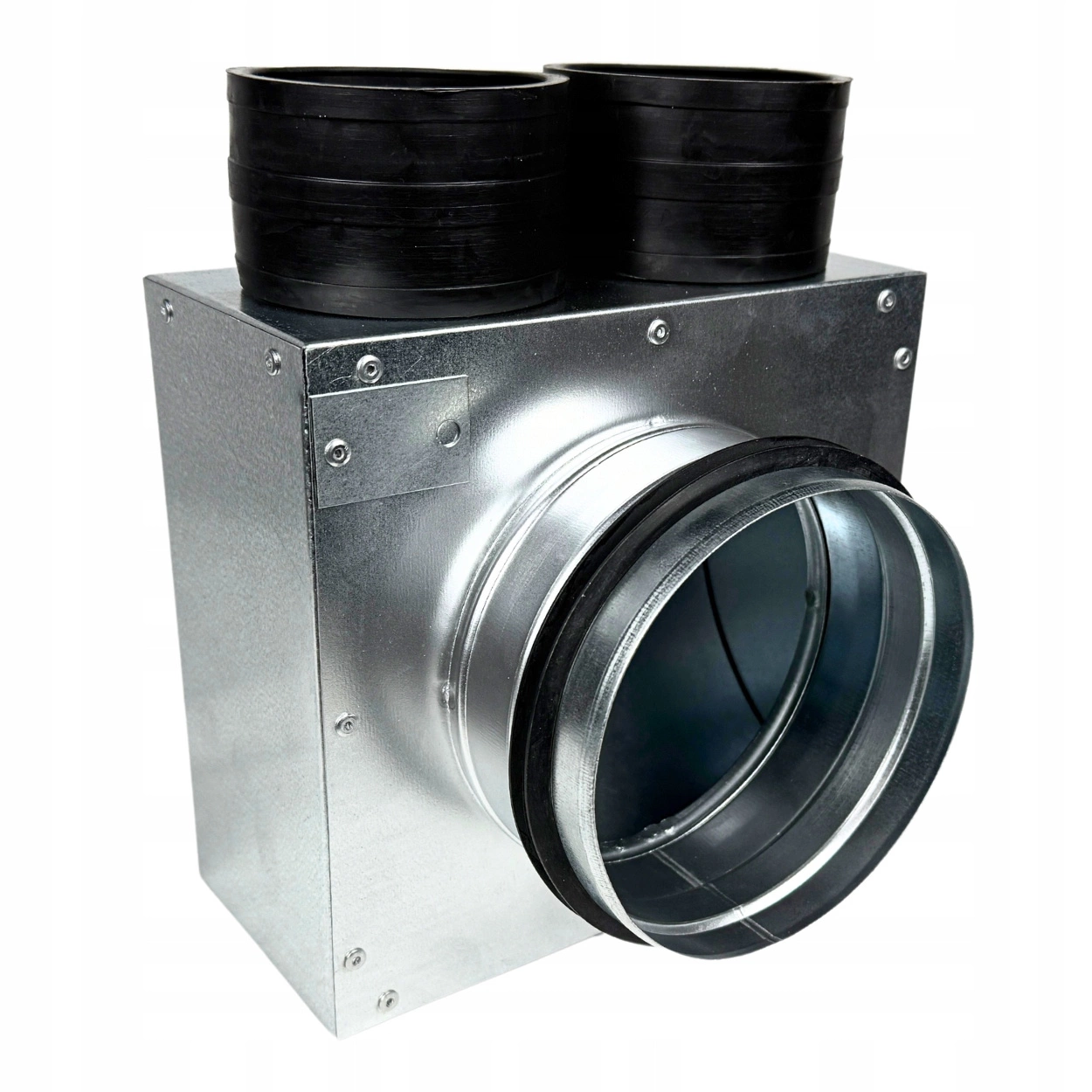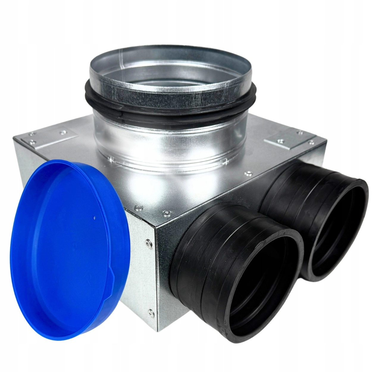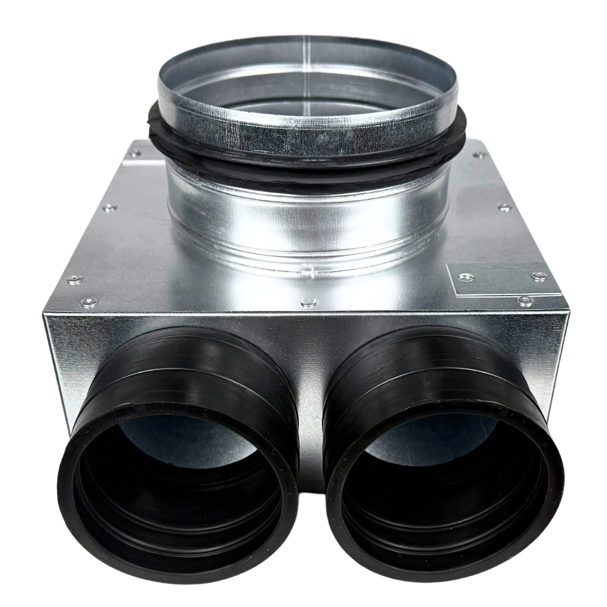 • Kompaktowa skrzynka rozprężna z 2 króćcami Ø75 mm i przyłączem Ø125 mm. Wykonana z ocynkowanej blachy, wyposażona w gumowe króćce samouszczelniające. Umożliwia szybki montaż i wysoką szczelność bez dodatkowych uszczelek.