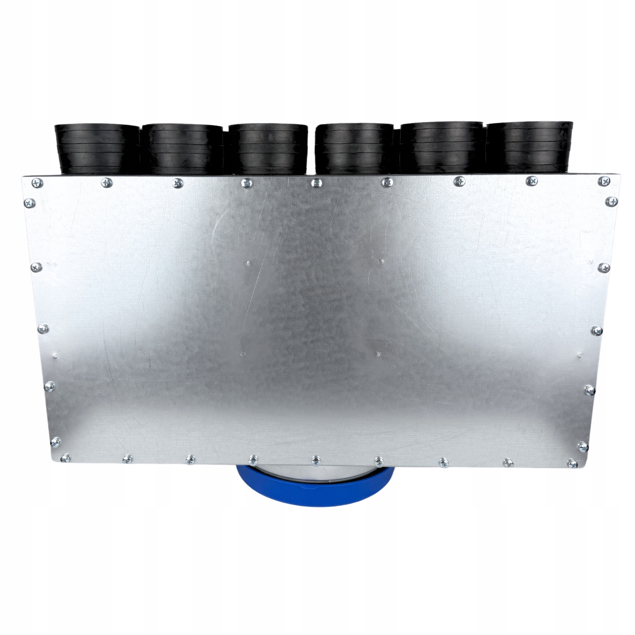 Rozdzielacz wentylacyjny z dwunastoma króćcami fi 75 mm i przelotowym wylotem fi 160 mm. Wyposażony w matę antybakteryjną i króćce samouszczelniające. Przeznaczony do systemów rekuperacyjnych.