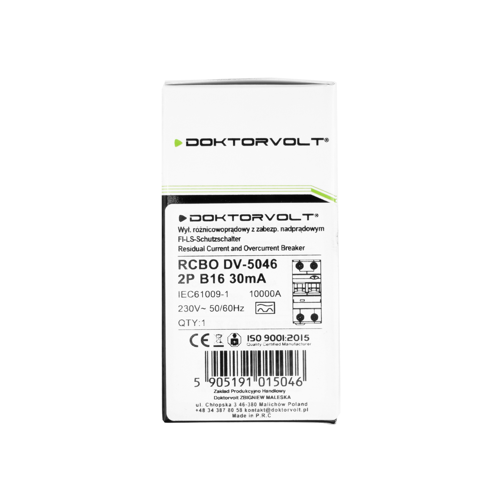 Wyłącznik różnicowoprądowy RCBO z członem nadprądowym B16 30mA 10 kA typ A Doktorvolt DV-5046