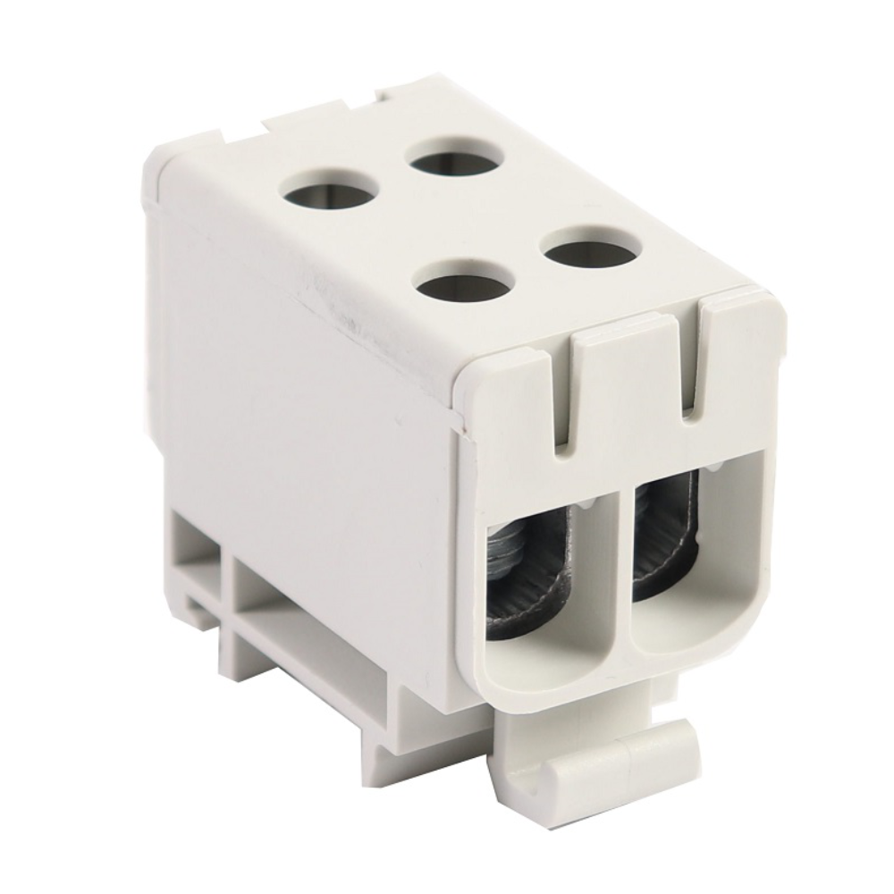Złączka szynowa uniwersalna (Al/Cu) ETB 50/1x2 idealna do wszystkich przewodów aluminiowych i miedzianych o przekroju od 2,5 mm² do 50 mm². Złączka elektryczna do montażu na szynie TH 35. Wykonana w klasie palności V2, maksymalna temperatura pracy wynosi +80°C. Złączka uniwersalna (Al/Cu) ETB 50/1x2 została przetestowana zgodnie z normą IEC 60947-7-1.