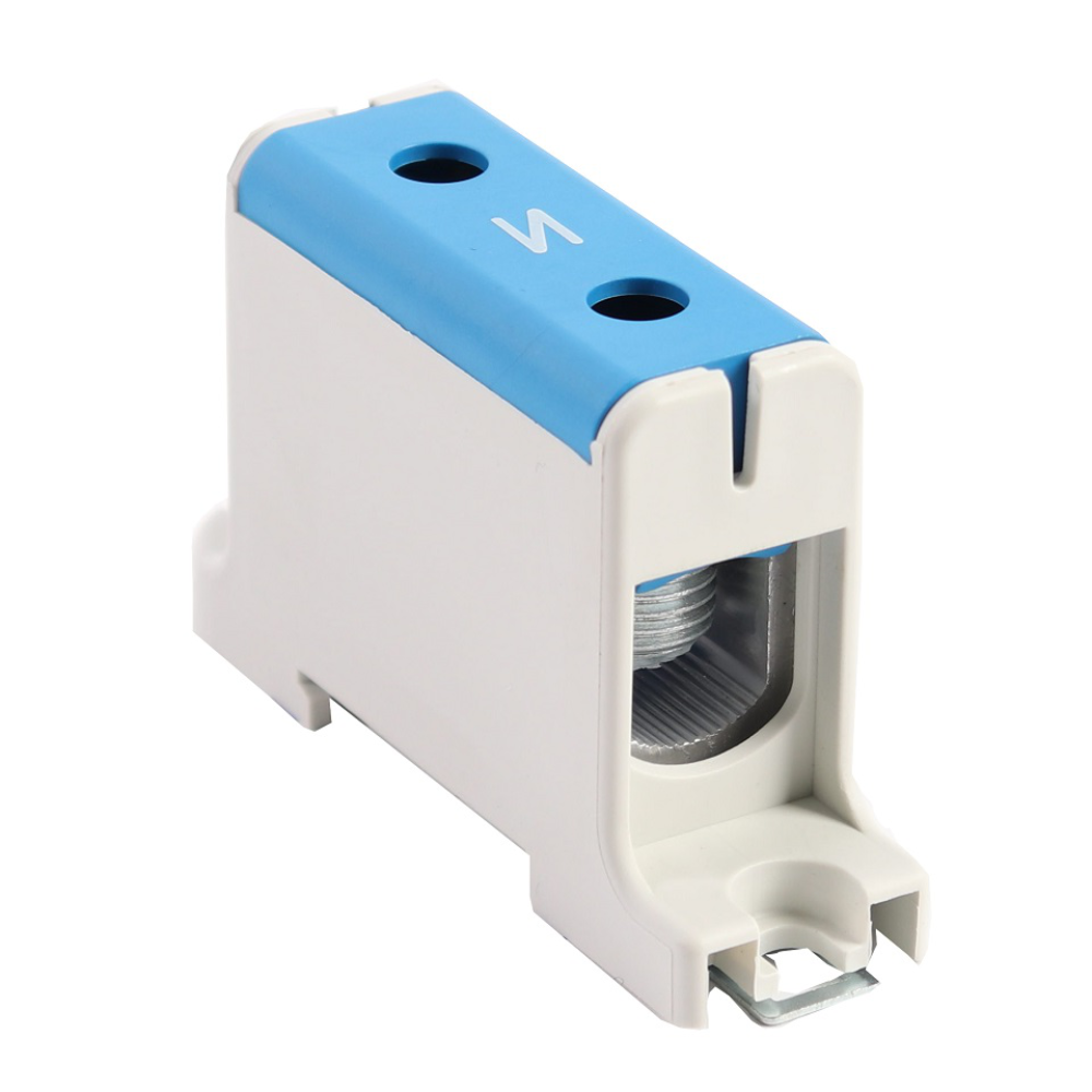 Złączka szynowa uniwersalna (Al/Cu) ETB 95/1 idealna do wszystkich przewodów aluminiowych i miedzianych o przekroju od 16 mm² do 95 mm². Złączka elektryczna do montażu na szynie TH 35. Wykonana w klasie palności V2, maksymalna temperatura pracy wynosi +80°C. Złączka uniwersalna (Al/Cu) ETB 95/1 została przetestowana zgodnie z normą IEC 60947-7-1.