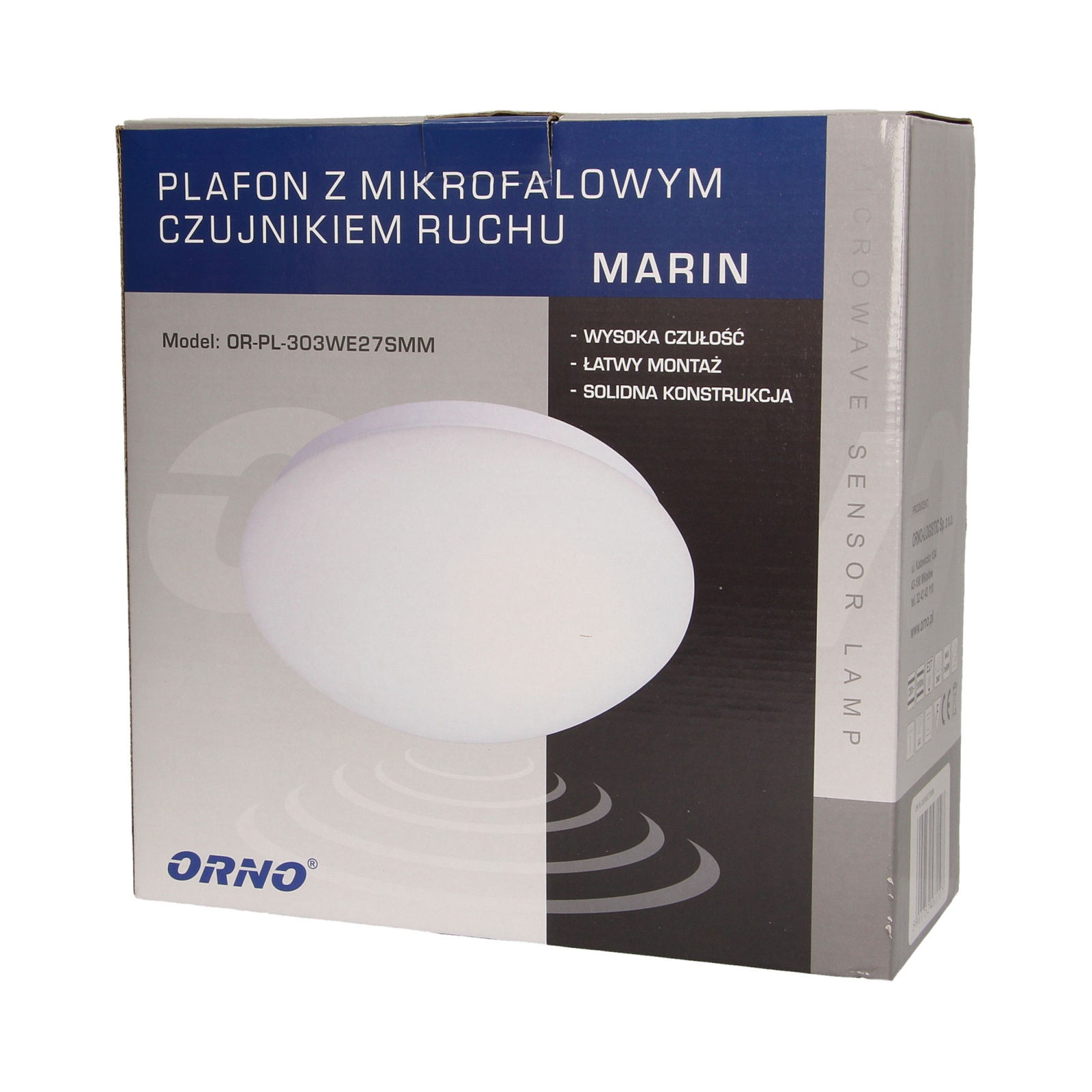 MARIN. plafon oświetleniowy z mikrofalowym czujnikiem ruchu. 60W. E27. IP20. szkło matowe OR-PL-303WE27SMM