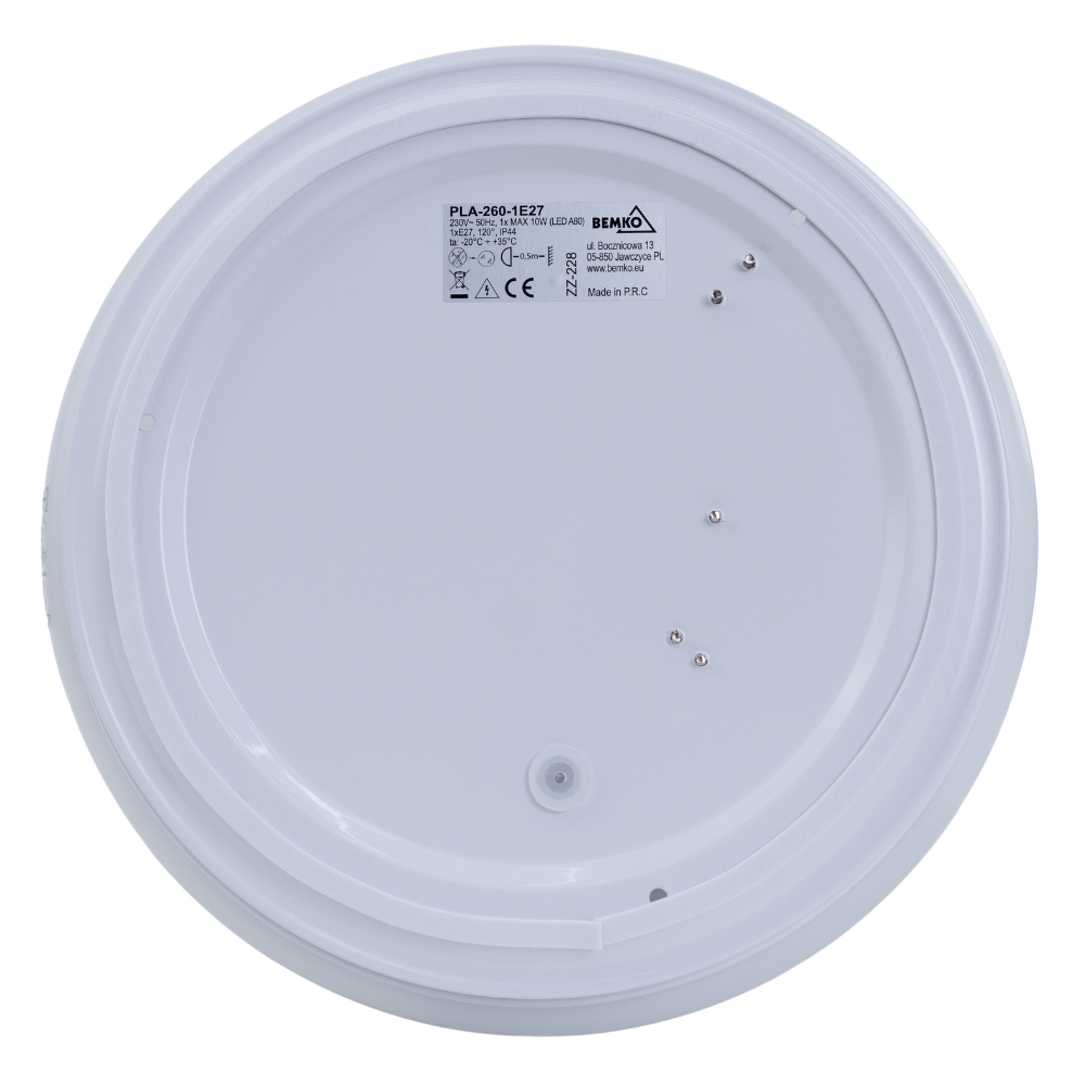 Plafoniera Plato 1xE27 IP44 mleczny klosz biała C37-PLA-260-1E27