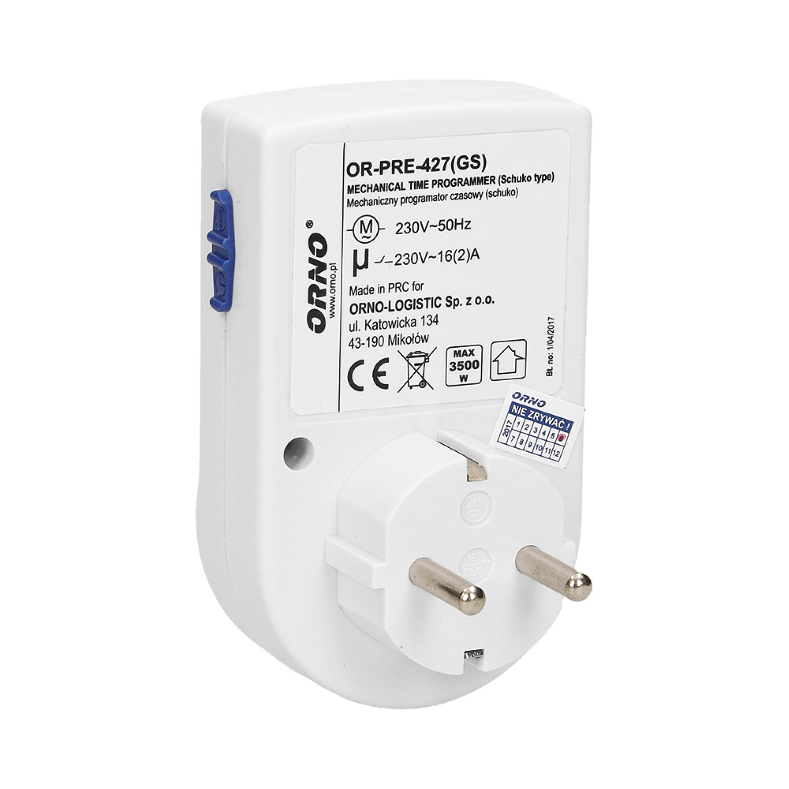 Programator czasowy mechaniczny. MINI. wersja schuko OR-PRE-427(GS)